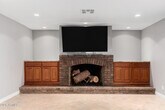 Classic ranch style house on corner lot in cul-de-sac neighborhood. Four bedroom two bathroom spacious interior with open living area with fireplace with bookend built-ins perfect for entertaining! Plenty of floor-to-ceiling cabinetry in large chef's kitchen includes generous granite countertop space with contemporary style stainless steel vent hood. Tile flooring,ceiling fans in every bedroom,blackout curtains in living area keep the house cool. Numerous closets for linens and additional storage. Enjoy the backyard with a large covered patio,low-maintenance turf and a nice size pool. Separated dog-run area for furry friends! Two car garage also houses washer/dryer. Parks,schools,shopping,freeways nearby. Move-in ready with landscaping,weed control,and pool service included.