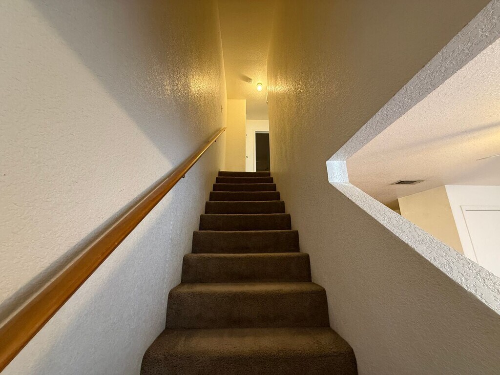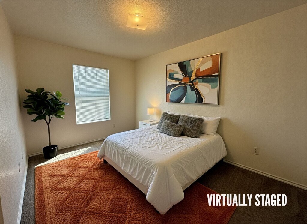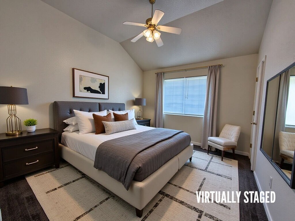 View 360 Virtual Tour: This 2-story townhouse is located off of Robinett Road with 2 bedrooms and 1.5 bathrooms. The 1/2 bath is downstairs across from a full-size laundry room with W/D hookups. The kitchen comes with a stove, refrigerator, dishwasher, eat-in area, and breakfast bar. Both bedrooms and the full bathroom are upstairs. Disclaimer: The furnishings or enhancements shown are AI-generated and intended for inspiration only. They may not reflect the actual scale, condition, or current features of the property.