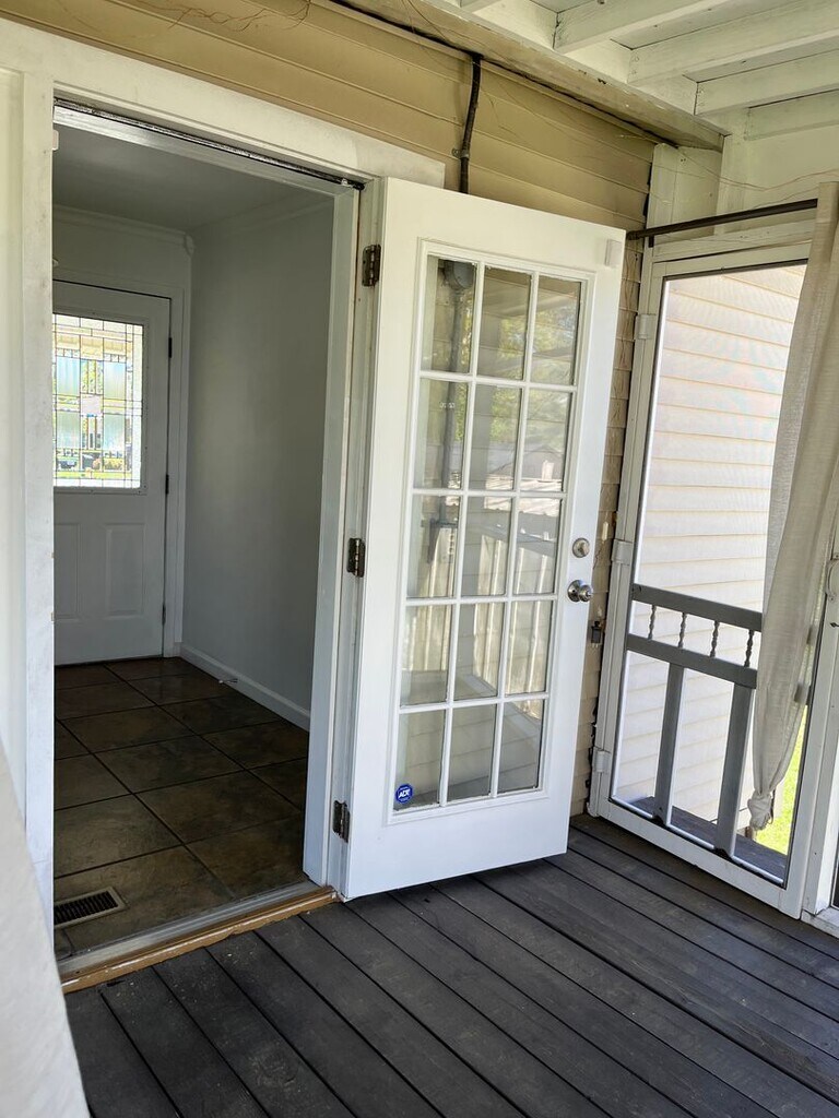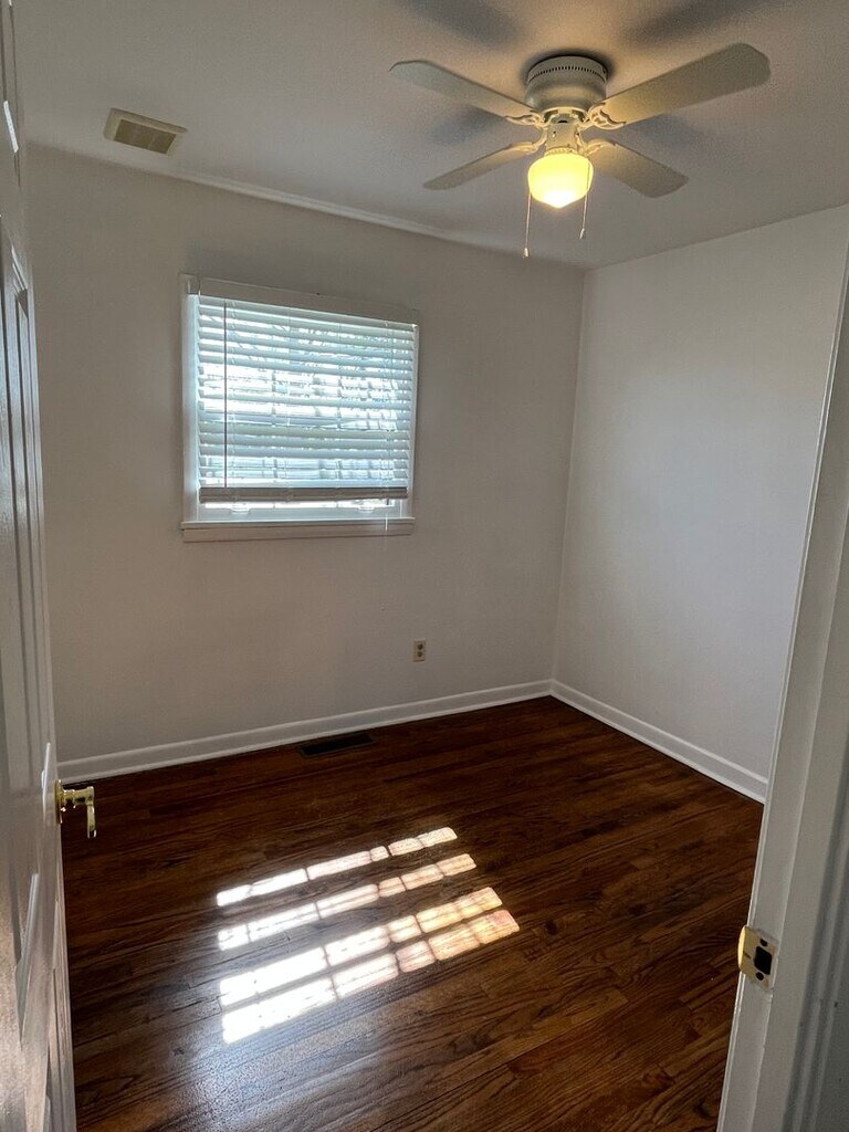 Conveniently located house with 3 bedrooms and 1 bathroom. Home has heat and air conditioned, bedrooms and living-room have hardwoods. Kitchen and Bathroom are tile. Window blinds are included. All appliance kitchen with refrigerator, stove, dishwasher and oven are included. A private back deck off the kitchen and 1 car covered carport. Landscaping included.