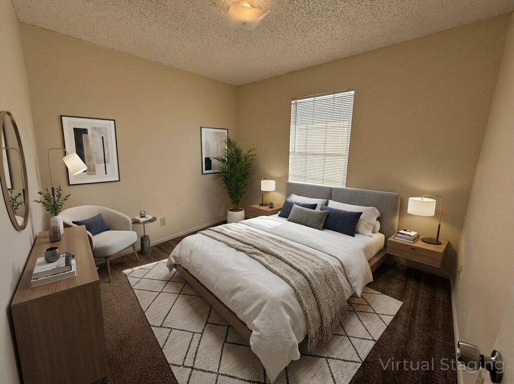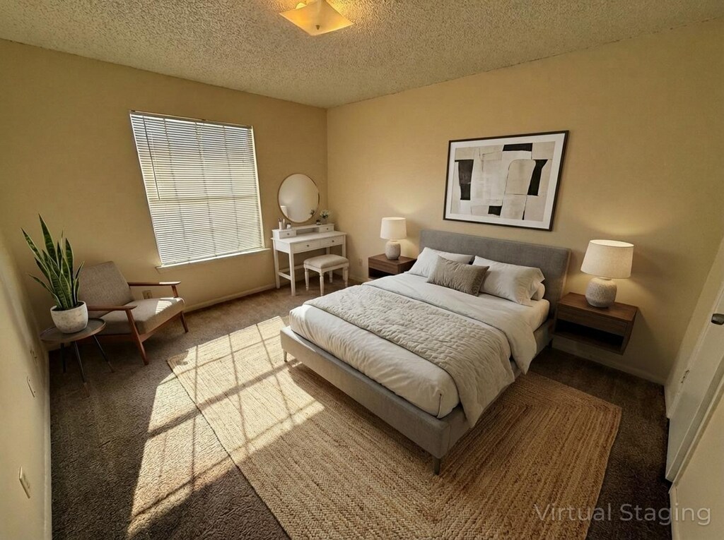 View 360° virtual tour: This 2-bedroom, 1.5-bath townhome-style apartment for rent in Killeen, TX is conveniently located near the East Fort Hood Airfield gate. The home features a mix of ceramic tile and carpet flooring and offers a functional two-story layout. The kitchen is equipped with traditional white appliances, including a dishwasher, and includes a dedicated dining space. The living and dining area opens to a private patio, which includes a locked storage room with washer and dryer connections. Upstairs, you’ll find two bedrooms and a bathroom. This property accepts HUD/Section 8. A $40 monthly water and trash fee applies in addition to rent. Appointments aren’t required to tour. Contact us or stop by our Killeen office to learn more and see this apartment in person once it becomes available! We are located at 1020 W Jasper Dr, Killeen, TX 76542. Disclaimer: The furnishings or enhancements shown are AI-generated and intended for inspiration only. They may not reflect the actual scale, condition, or current features of the property.