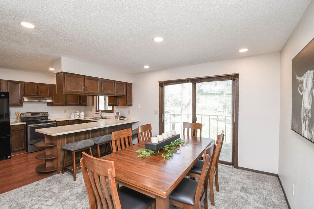Enjoy the comfort and convenience of this spacious, fully furnished home located in a desirable southeast Sioux Falls neighborhood. With easy access to the interstate, bike trails, and Lincoln High School just down the road, this home offers both practicality and comfort for extended stays. The main level features three bedrooms, a large front living room filled with natural light, and a dining area with a sliding door leading to a deck that overlooks the fully fenced backyard. The kitchen includes all appliances, oak cabinets, and a breakfast bar—perfect for home-cooked meals. Downstairs, you'll find a cozy family room with garden-level windows and an additional office with a closet that can serve as a fourth bedroom. The home also features two bathrooms, updated flooring throughout, and an impressive four-stall garage offering plenty of storage or workspace. Perfect for traveling professionals seeking space, privacy, and a quiet residential area close to everything Sioux Falls has to offer. *No utilities included *Tenant does lawn care and snow removal Please reach out to schedule a showing today at !
