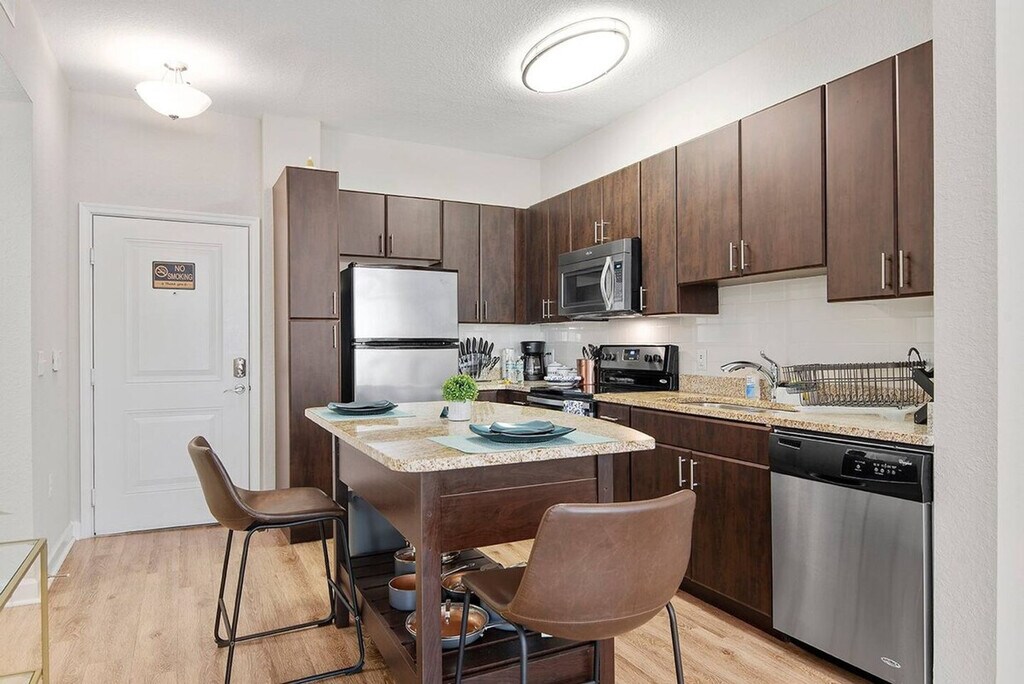 Take a break and unwind at this luxury 1-bedroom apartment in the heart of Westshore. With a killer location, you're just 7 minutes from Tampa International Airport, 5 minutes from Raymond James Stadium, and within walking distance to International Plaza Mall. Enjoy a tranquil retreat with a delightful courtyard view adorned with tropical foliage and the occasional serenade of cooing doves. Inside the apartment, you'll find all the essentials for a comfortable retreat. The fully stocked kitchen features stainless steel appliances, including a microwave, dishwasher, full fridge, and stove, along with all the cooking utensils, pots, and pans you might require. The spacious and private bedroom includes a queen-sized bed, closet for clothing storage, and en-suite access to the bathroom. Additionally, there are two smart TVs in the apartment, ensuring you stay entertained during your downtime. The living room offers an extra sleeping space with linens provided, and the large bathroom features a shower-tub combination with essential toiletries provided. Enjoy the convenience of an in-unit washer and dryer, with laundry detergent supplied. For dedicated parking, a parking pass is available for $50 flat for your stay to park behind the resident gate. The building has EV charging stations, and a fee to charge may apply. Guest parking is first come, first served and free, though it can fill up at night. Westshore is one of Tampa’s most vibrant and connected neighborhoods, perfectly positioned for both leisure and business travelers. You’ll be minutes from International Plaza and Westshore Plaza, home to upscale shopping, big-name fashion brands, and dozens of dining options ranging from quick bites to elevated fare. Catch a game or a major concert at Raymond James Stadium, just a short drive away, or explore the area’s trendy craft breweries and tasting rooms. When it’s time to unwind by the water, some of Florida’s most beloved beaches, like Ben T. Davis Beach and Clearwater Beach, are just a short drive away. Located just 7 minutes from Tampa International Airport and 10 minutes from downtown Tampa, Westshore is the ideal launchpad for your stay. The apartment community is smoke-free, and no smoking is permitted anywhere on site. Pets are not allowed, and there is a $250 charge for violations, including no parties. Quiet hours are from 11:00 PM to 7:00 AM, and no commercial photography is allowed. The home is accessed with a combination of smart lock and lockbox, with self check-in available anytime after check-in hour. Guests are required to provide names and dates of birth for background checks, as mandated by property owners and building management. Community rules and parking disclaimers will be sent via e-signature and must be completed prior to check-in. [SI]
