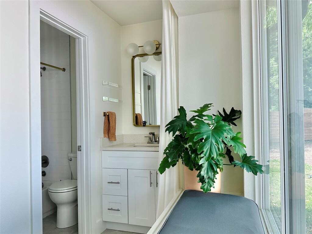 Thoughtfully Remodeled Mid-Century South Austin Gem! Welcome to 4504 W Village Ct, a thoughtfully remodeled home that blends the charm of mid-century design with modern sophistication. This South Austin gem boasts a clean open floor plan flooded with natural light, making this space feel much larger than your typical 2 bed/2bath home. It has been meticulously updated with both curb appeal and indoor aesthetic in mind. This home boasts 100-year-old reclaimed wood floors from Market Street Wharf in New Orleans", multiple window seating nooks, gorgeous mid-century modern plumbing and light fixtures and energy efficient double pane sliding patio doors & new windows throughout the house. The kitchen features shaker style modern cabinets, and pure quartz countertops with stainless steel appliances. The bedrooms are generously sized, with the secondary bedroom large enough to host an attached office space as well. More importantly, the major functional and costly items like HVAC, water heater, and window have all been updated. The energy efficient windows make a huge impact during the hot Texas weather. Enjoy the seamless indoor-outdoor flow with bay window seating, outdoor tiled patio space, with included outdoor string lighting, and an immaculately landscaped front lawn. Additional features include a newly paved driveway and modern cedar & steel post fences . Dryer, washer and refrigerator are provided with courtesy. Less than 7 miles to ABIA and easy access to major highways 71, IH 35 & Hwy 183. Here is the South Austin jewel you've been waiting for!"