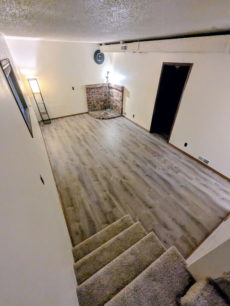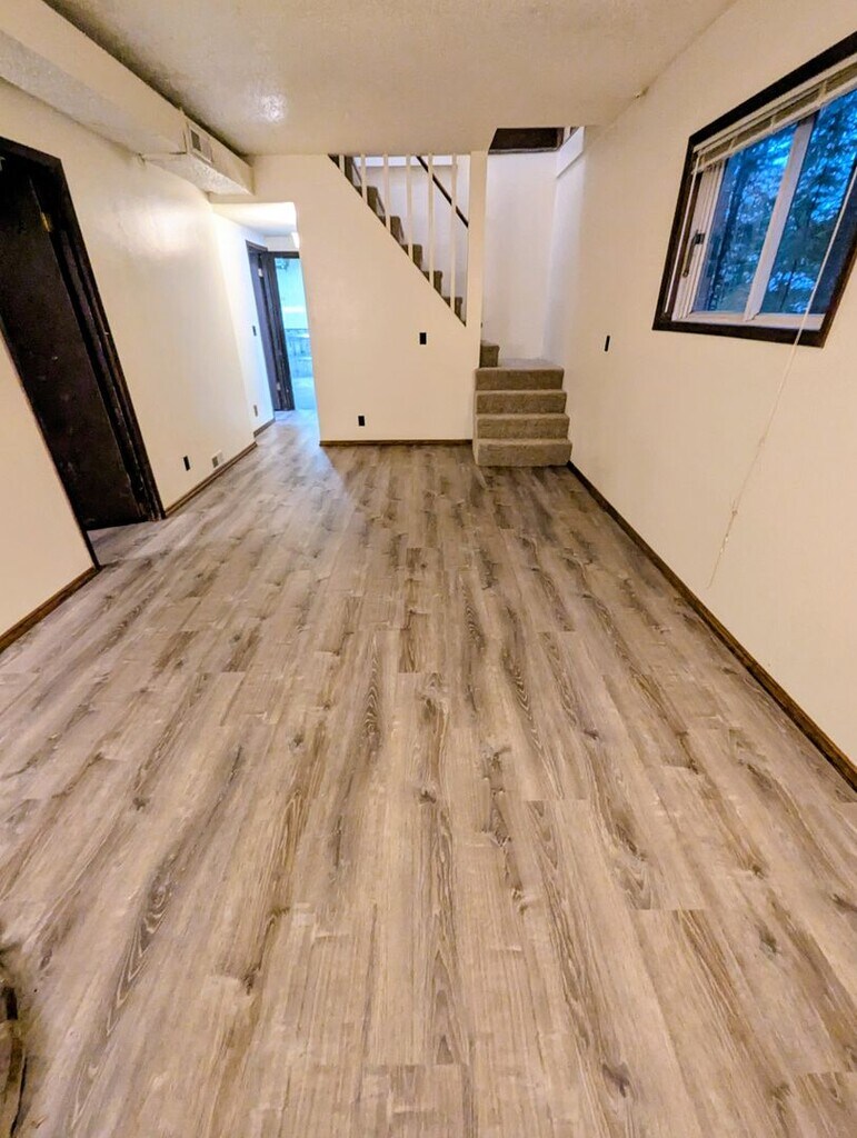 This two story house features all new vinyl plank flooring and fresh paint throughout. There are 2 bedrooms with a 3/4 bath, laundry and large family/rec room on the first floor. The 2nd floor features 2 more bedrooms, living room, kitchen with adjoining dining area and a full bath. There is a front deck on the 2nd story. The area is forested and private with a large lot and a single car garage. Forced air heating system. Ample parking for vehicles, boats etc. Owner pays: water/sewer. Looking for a long term tenant. No pets.