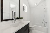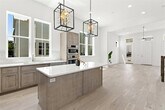 Built in 2022, this upscale modern home has 3 bedroom, 2.5 bath, 2030 sq ft with incredible high end finishes. This luxurious home is perfect for entertaining with an open floor plan, soaring 12 ft ceilings, all hardwood floors, gourmet eat-in kitchen with quartz countertops, marble backsplash, and Bosch appliances. Spacious living room and dining room flooded with natural light, overlooking green space , with no back neighbors. Refrigerator, washer & dryer included. Upstairs is the luxurious primary suite with an oversized soaking tub, walk in shower, and large walk in closet. Also on this floor are two secondary bedrooms that share a marble tile bathroom. Enjoy features like the charming front porch, attached 2 car garage, security system, electric car charger, wrought iron stairs, and recessed lighting. The Springdale community features a dog park which is just a few steps from the house. Centrally located with a nearby golf course, trailhead for Little Walnut Creek Hike and Bike trail, and a short 5 miles commute to Downtown, 2 miles to Mueller, 8 miles to Airport, near UT, Tesla, or the Domain. This house simply has it all!.