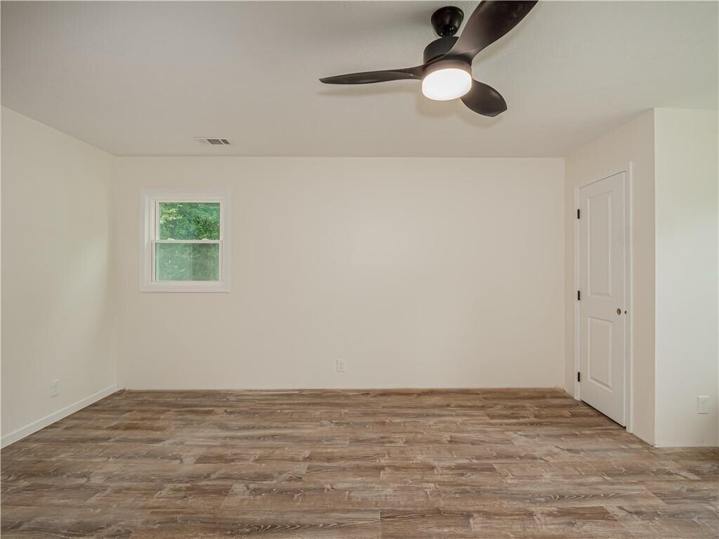 Totally renovated home. A covered entry leads into the main level with an open floor plan that includes a living room,dining room,and large kitchen with custom cabinets,double islands,breakfast bar,Quartz counters,tile backsplash,stainless appliances (gas stove),half bath and pantry. There is a spacious family room with wood burning fireplace,sunken laundry room with access to the rear patio and 2-car side entry garage with auto-opener. Upper level features a full hall bath with single vanity and tub/shower combination. Three spare bedrooms with one attached to a full bath with tub/shower combination. The master bedroom has two closets and a window seat. The master bath has dual vanities with walk-in shower and soaking tub. All bedrooms have ceiling fans with remote controls,and luxury planking throughout (no carpet). Large front and rear yards. Lots of parking and extra patio area. Excellent Cobb Schools. Convenient to I-75,I-575,and Hwy 92. Minutes to Noonday Park,KSU,shopping & restaurants. No aggressive dog breeds. Ready after 1/6/26.