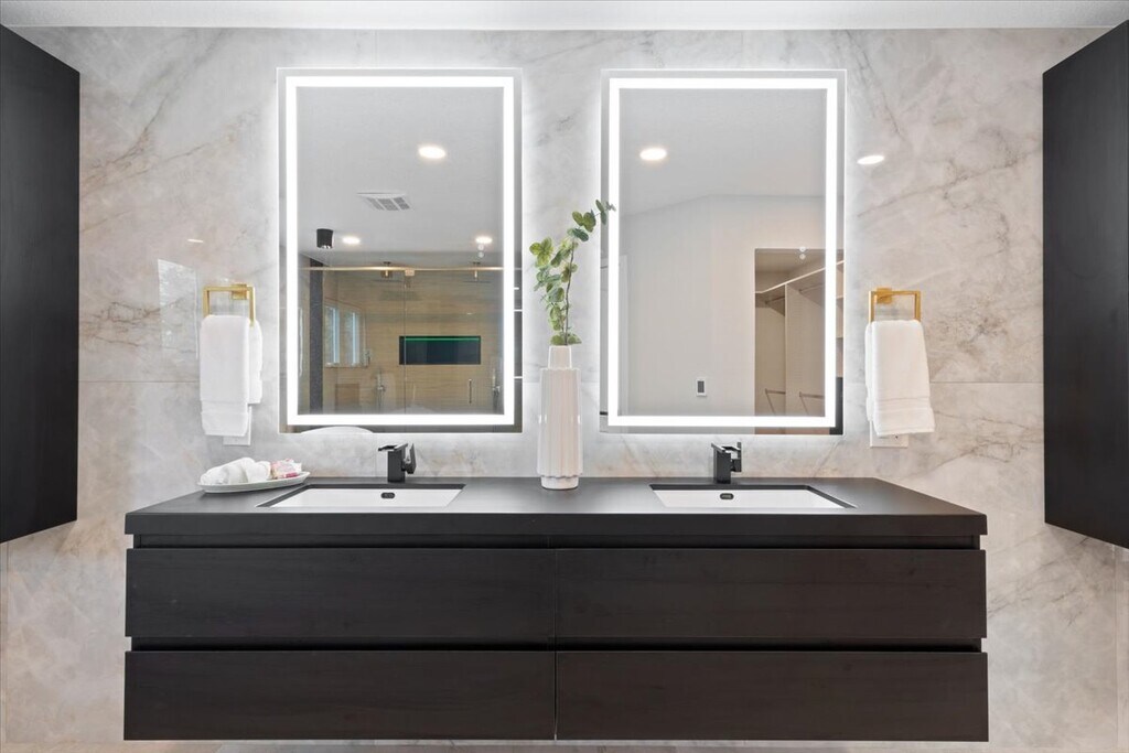 This is your opportunity to live in a stunning home completely renovated masterpiece. Experience elevated luxury in this fully renovated designer townhome, nestled within the prestigious Stoney Brook community—one of DTC’s most coveted enclaves. This rare residence seamlessly blends timeless elegance with modern sophistication, offering inspired living in a serene, park-like setting. Step inside to discover soaring vaulted ceilings, gleaming hardwood floors, and expansive windows that bathe the space in natural light. The open-concept living area centers around a dramatic floor-to-ceiling tiled fireplace and flows effortlessly into a chef’s kitchen, complete with custom walnut cabinetry, quartz countertops, and sleek black ZLINE appliances. French doors lead to two exceptional outdoor retreats: a private front courtyard ideal for morning coffee or evening wine, and a tranquil back deck overlooking a lush greenbelt and babbling creek. Upstairs, the primary suite is a true sanctuary, featuring its own balcony and a spa-inspired bath with a jetted tub, heated floors, dual vanities, a massive walk-in shower, custom closet, and private water closet. Two additional bedrooms and a beautifully appointed full bath complete the upper level. The finished basement expands your living options with a fourth (non-conforming) bedroom, a full bath, a stylish media lounge with mini bar, laundry area, and a versatile bonus room perfect for a gym, office, or creative studio. Residents enjoy resort-style amenities including a sparkling pool, newly updated pickleball and tennis courts, scenic walking trails, and beautifully maintained grounds—all just minutes from light rail, upscale shopping, fine dining, and the best of DTC. This is more than a home—it’s a curated lifestyle of comfort, beauty, and connection. Cinematic video: