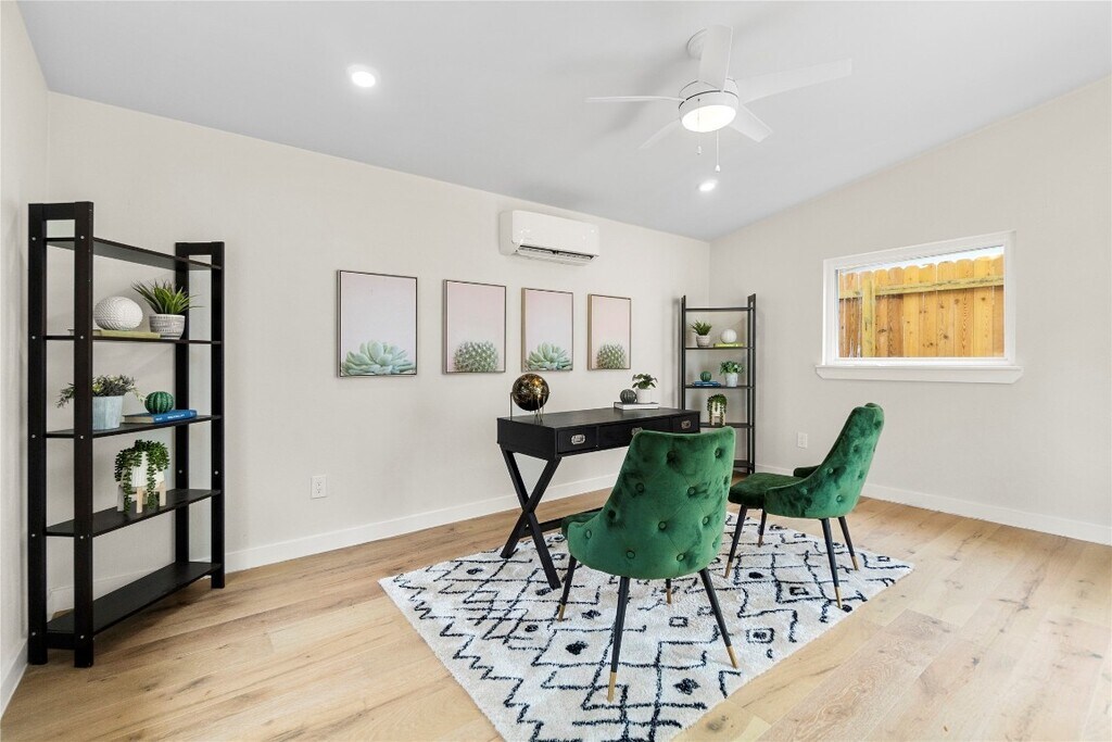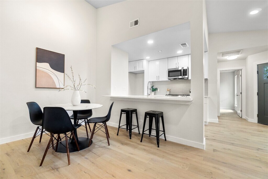 Beautifully remodeled home with a detached casita/office, located less than one mile from the Domain. Every detail has been thoughtfully upgraded, including a new roof, siding, cabinets, flooring, countertops, windows, doors, and all brand-new stainless steel appliances—refrigerator, washer, and dryer included. The private casita/office offers a perfect space for remote work, guests, or creative use. Nestled among mature oak trees, the property enjoys natural shade that helps keep the home cool in the summer. Multiple outdoor areas provide ideal spaces for dining, relaxing, and entertaining. Pet-friendly and designed for peace of mind, the fully fenced and gated yard offers both privacy and security. With close proximity to the Domain, nearby parks, excellent schools, and major office hubs, this home delivers an exceptional lifestyle and convenience. Inside, soaring ceilings in the living room create an open, spacious feel, complemented by abundant natural light, tall windows, and modern light fixtures throughout. Remote-controlled ceiling fans and GFCI outlets add comfort and safety, making this home truly move-in ready.
