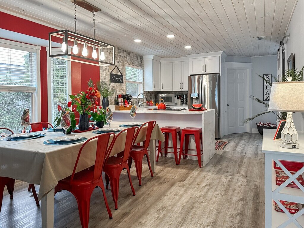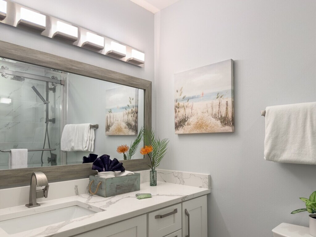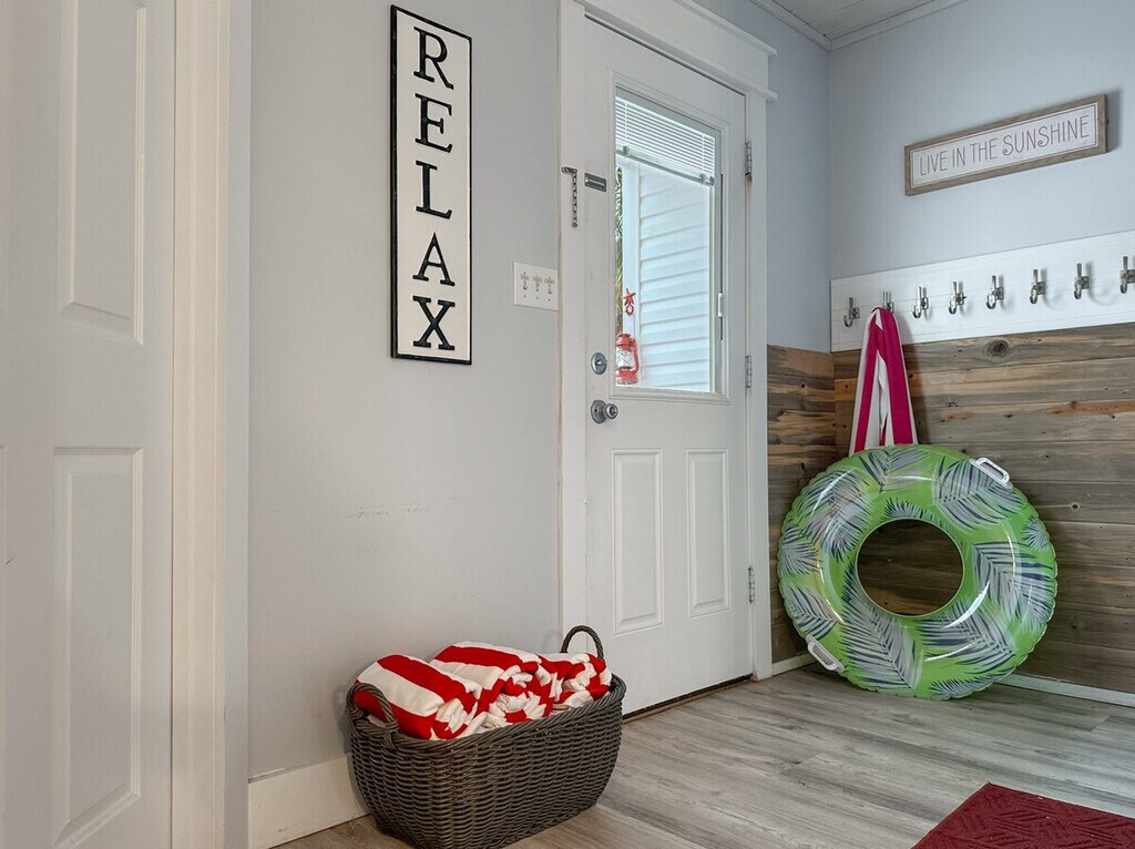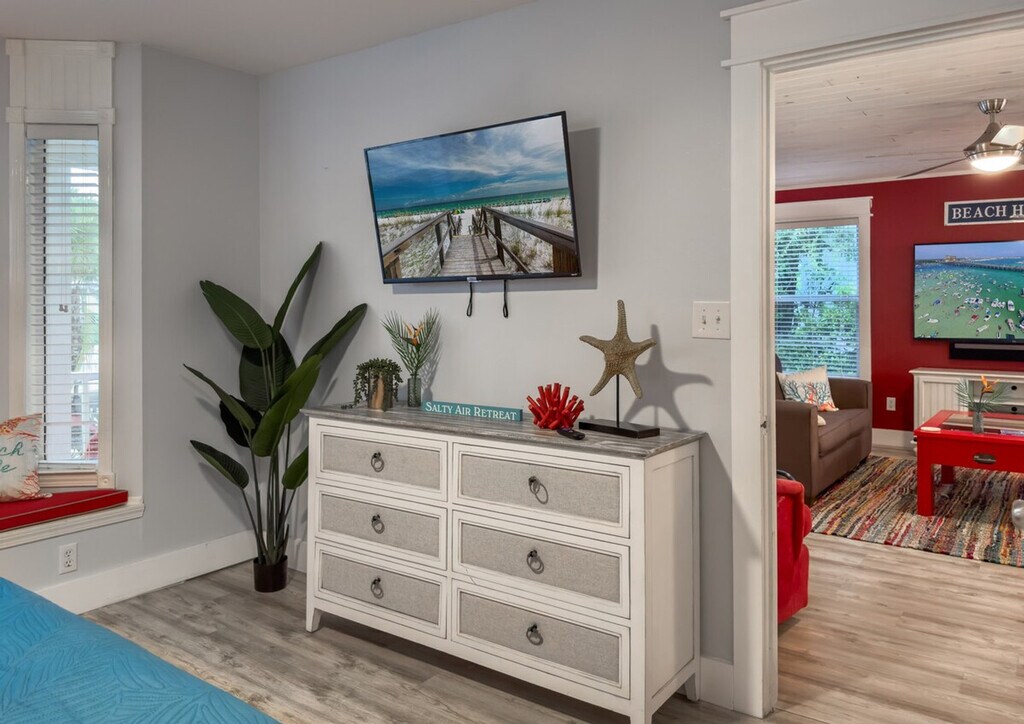 Welcome to SolMate, a charming beach retreat located just a short walk or golf cart drive from the beach. This delightful property features a unique split layout with a three-bedroom main house and a quaint two-bedroom carriage house, all connected by a large paved patio and a perfect saltwater pool. Feel at home with the cozy southern living vibe and farmhouse/country-themed interiors, offering a serene escape to the sugar white sands of the Emerald Coast. The heart of SolMate is its blend of privacy and togetherness, with two homes in one. Enjoy the outdoor fun with a hot tub, saltwater pool, putt-putt green, ping pong, and an outdoor kitchen with a natural gas Weber grill. The property includes a complimentary six-passenger golf cart and bikes for cruising around, making it easy to explore the nearby beach town vibes. SolMate is pet-friendly with a $200 pet fee for up to two dogs. Pool heating is available upon request with pricing varying based on the season and length of stay. The golf cart is not available for use by those 25 years or younger, and a valid insurance and driver's license are required. Located in Crystal Beach, Destin, this beautiful beach house is just two blocks from public beach access and close to the heart of Destin, where you can find plenty of entertainment, food, and shopping. Crystal Beach has been voted the most beautiful beach in North America for four years in a row. Nearby attractions include Crab Island, The Track, Big Kahunas, Harborwalk Village, Destin Commons, and Silver Sands Outlets. Check-in is after 4:00 PM and checkout is at 10:00 AM, with self check-in available via keypad. Underage drinking and illegal activities are prohibited. Pets are permitted only if house trained, and guests are expected to clean up after their pets to avoid a $50 fee. The private pool is for registered guests only, and pets are not allowed in the pool or on furniture. Any tampering with the pool heater will result in enforcement of the security deposit. Guests are encouraged to purchase rental/travel insurance for peace of mind. Includes a cozy front porch and colorful surroundings, perfect for relaxing and enjoying the laid-back beach town atmosphere. A foosball table in the living room offers entertainment for the kids. [SI]