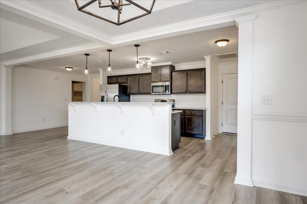 Luxury 4 Bedroom Home with Smart Features and Outdoor Living. Welcome to this modernly designed four-bedroom, two-bath home featuring a spacious open concept floor plan designed for both elegant living and effortless entertaining. The chef inspired kitchen showcases a stunning two level granite island, premium appliances, and modern finishes that flow seamlessly into the main living area, highlighted by an electric fireplace for added ambiance. Enjoy indoor-outdoor living on the extended covered patio-perfect for grilling, fire pits, and curated seating areas for relaxing or hosting guests. The home features durable luxury plank vinyl flooring throughout the main living spaces, plush carpeted bedrooms, and a sophisticated neutral paint color throughout. Additional upgrades include a full interlogic smart home security system, high speed fiber internet capability with speeds up to 1 Gbps, and lawn care included for a low-maintenance lifestyle. Washer and dryer are also provided for your convenience. $2,200 monthly rent, $2,200 security deposit, $200 lease administration fee, 12-month minimum lease. Available March 1, 2026. $40 application fee required for all applicants 18 and older. Application includes background check, credit check, eviction check, and rental history verification. Income verification (3 times rent), and credit report (600 TransUnion ResidentScore minimum). Double deposit may be acceptable for 2.5 times income to rent or below minimum ResidentScore. Owner reviews all applications.