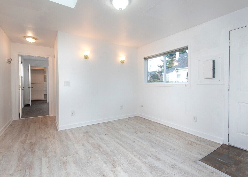 This one of a kind home is a ground level extension of a neighborhood duplex. Situated just off of convenient NE 45th St., the property is located halfway between the popular Wallingford and University District neighborhoods. Boasting a walk score of 92, the home is steps away from popular restaurants, grocery stores, and neighborhood shops. Bus lines are just a block away and it is a quick ride or vigorous walk to the University light rail station. There is a large secure 10x12 storage room for private use by Unit C, that is great for bike storage. If a car is part of your transportation plan, you will appreciate the designated off street parking spot and plentiful street parking. There is a large fenced yard shared by the three units on the property and plenty of space for a garden or flower pots, as well as a blank space to make your own. This unit is more like a small home than an apartment. It has its own small porch with entry into the living room which is brightened by a skylight. The kitchen has full size appliances and a large pantry, and space for a small table. The living room is small but has a functional layout alleging you to maximize the space and it is open to the kitchen. Down the hall is a good size bathroom with combination bathtub/shower. The bedroom is a great size with room for a queen bed and dresser, and could accommodate a king size bed! The bedroom leads to a huge walk-in closet with built-ins, which leads to a utility room with full size washer and dryer and utility sink. This unique rental is clean and updated and in an unexpected way, offers many of the features of a single-family home. If you attend or work at UW, this place is for you! If you love the residential feel of Wallingford, this place is for you! If you like all your amenities within walking distance, this place is for you! Water, Sewer, Garbage: Flat monthly charge of $100 for first person, $50 for additional person Electricity: Tenant paid directly to Seattle City Light. Approval Criteria: Credit score of 700 and 2.5x the rent in income. For questions or to schedule a showing, contact Chelsea at or