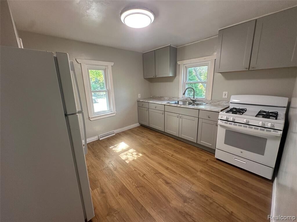 Available for immediate move-in. Enjoy this home with peace of mind. Backyard is fully privacy fenced, kitchen and bath updated, in-unit laundry in the full-sized basement complete with adequate storage space, and a 2-car detached garage. Utilities, gas, water, and electric, lawn maintenance and snow removal are tenant's responsibility. One dog under 25lbs or one cat OK.