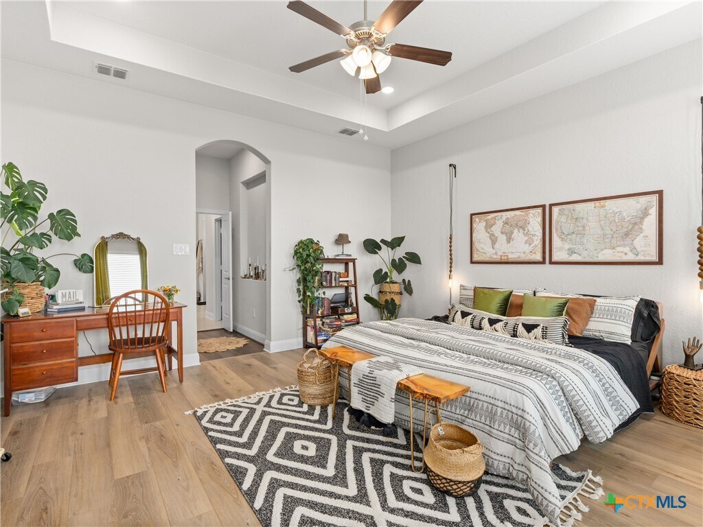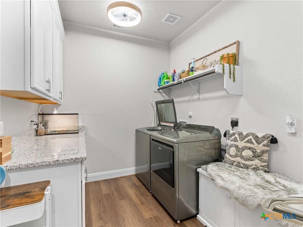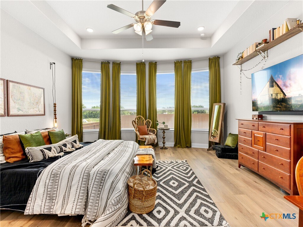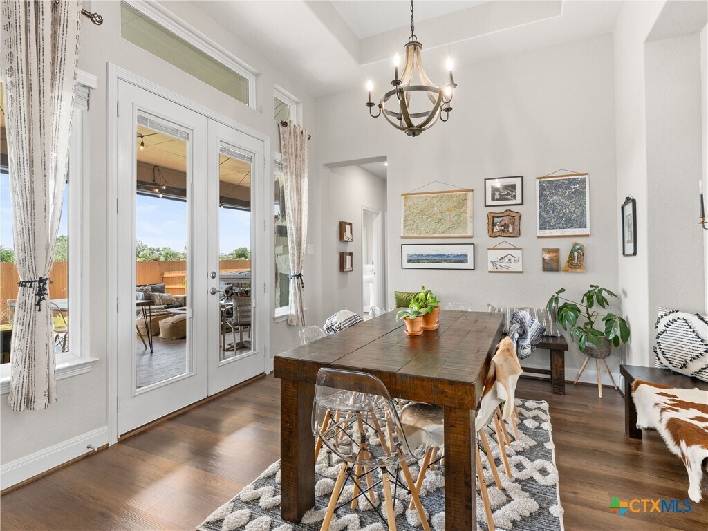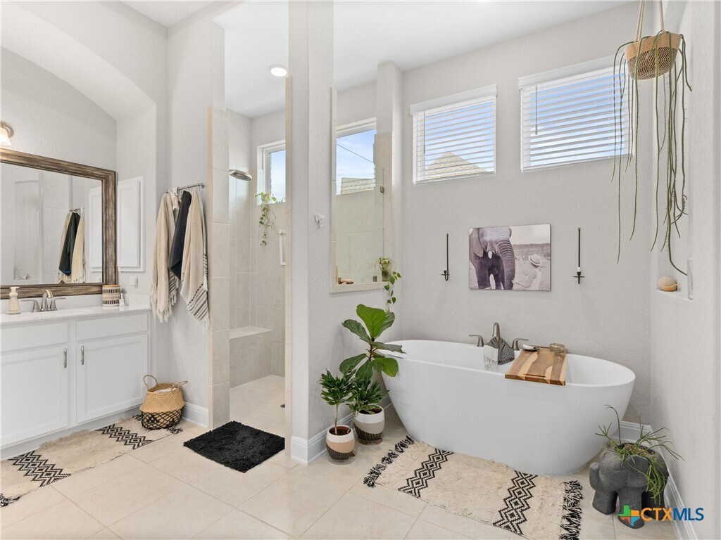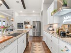 Impressive curb appeal,soaring ceilings,and stunning interior finishes set the tone for this standout residence in the desirable Harvest Hills community. With 4 bedrooms,3.5 baths,and over 3,269 square feet of thoughtfully designed living space,this home offers the perfect blend of sophistication and comfort. Step inside to a bright,open-concept layout anchored by a show-stopping kitchen-featuring a massive granite island,abundant cabinetry,stainless steel appliances,and a sleek vent hood that ties it all together. Rich lvp flooring,beamed ceilings,and oversized windows enhance the home's natural elegance,while multiple living and dining areas provide flexible functionality. The spacious primary suite is a peaceful retreat with a dramatic wall of windows,tray ceilings,and a spa-inspired en suite bath with dual vanities,a soaking tub,and a walk-in shower. Secondary bedrooms are generously sized with ample closet space and designer details. Step outside and you'll find one of the home's true highlights: a covered outdoor living area complete with a stone fireplace,string lighting,and space to dine,unwind,or soak in the hot tub. Best of all,the home backs to green space with no rear neighbors,offering added privacy and a peaceful backdrop for outdoor entertaining. Situated on a .32-acre lot with a 3-car garage and access to community amenities,this home checks all the boxes for luxury living in a relaxed Hill Country setting.