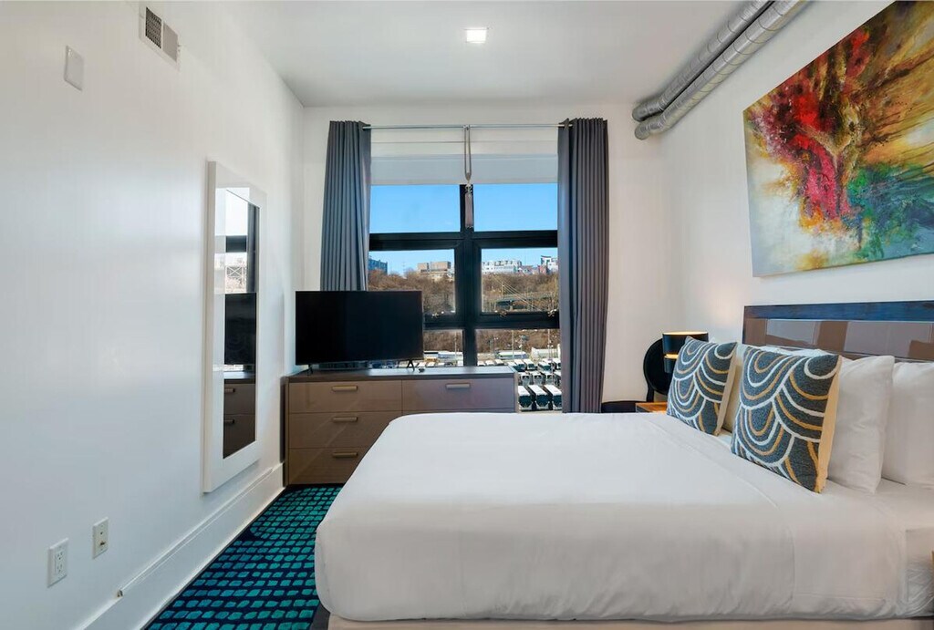 Feel at home in this spacious two-bedroom apartment located in the vibrant community of Hoboken, New York Metro Area. Offering spectacular views, this apartment is perfect for families or business partners seeking unparalleled ambiance. The units can be located on the third, fourth, fifth, or sixth floor, providing a peaceful and private retreat. Decorated in a feng shui style, this apartment allows you to relax comfortably. It features a fully furnished interior designed to fit the needs of guests visiting the area. For those who are fitness fanatics, there is an on-site Real Hot Yoga studio. Arriving later than planned? There’s a 24-hour check-in available for your convenience. A fifth guest can stay for $50 per night. Conveniently located in Hoboken, this apartment offers easy access to the vibrant community and its attractions. Enjoy the spectacular views from the rooftop terrace on the 7th floor, a shared space accessible to all guests. Smoking is strictly prohibited inside the property and apartments, including all enclosed areas. Any violation of this rule may result in a penalty of up to $500 to cover deep cleaning, deodorizing, and any damage caused. Security cameras operate 24/7 in exterior areas of the building for the safety and peace of mind of all guests. The rooftop is a shared space and not part of the apartment. Scheduled fire alarm and elevator maintenance is planned for September 10, 2025, from 9:00 AM to 4:00 PM, during which fire alarms may sound intermittently and the elevator may be briefly unavailable. No access to the apartment will be needed during this time. Please do not move furniture from its current spot as it can cause damage to the items.