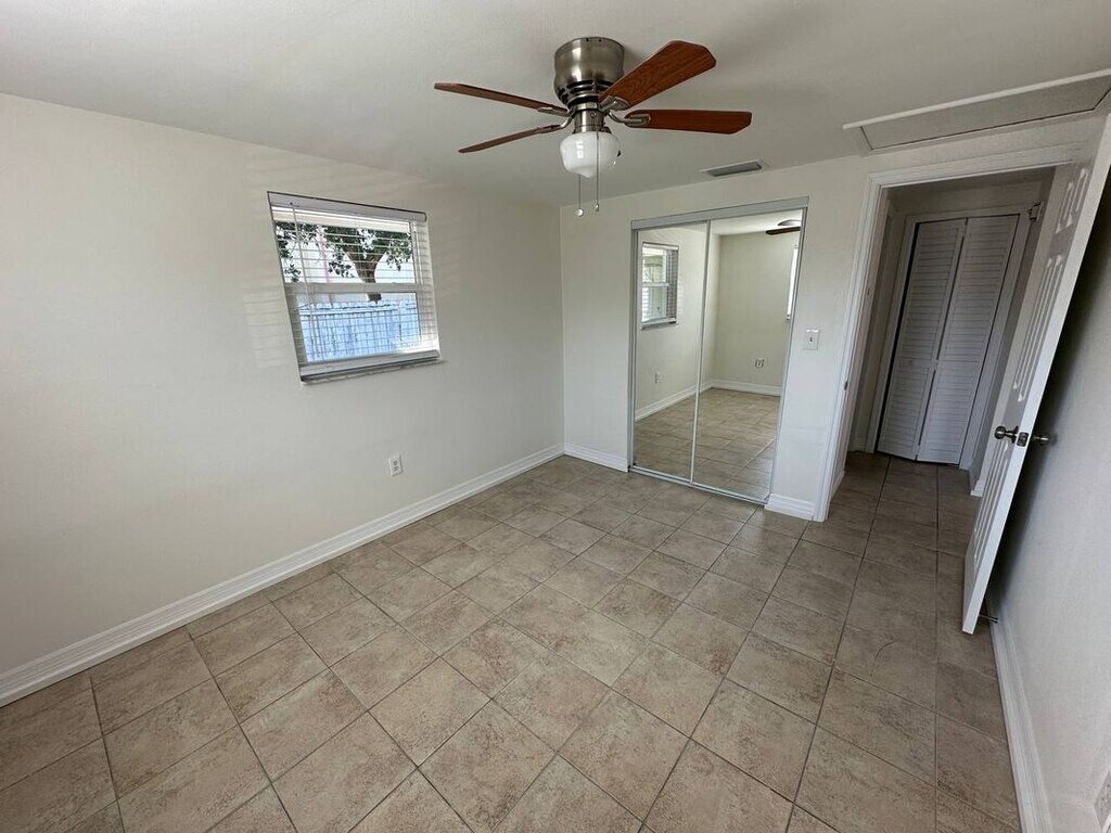 Completely remodeled 2-bedroom, 1-bath apartment in a duplex, ideally located in St. Petersburg near shopping, dining, and everyday conveniences. This unit features tile flooring throughout and a brand-new kitchen with white cabinetry, granite countertops, and new stainless-steel appliances. Enjoy all-new interior doors, newer double-pane windows with blinds, and new ceiling fans in each bedroom. The updated bathroom offers a tub/shower combination with a new vanity and shower head. Step outside to a private, fenced backyard, and enjoy the convenience of assigned parking for two vehicles. Tenants are responsible for utilities, split between the two units for water, sewer, and garbage. Electricity and internet are tenant-paid. Move-in requires first month’s rent and security deposit with approved application(s). Application fee is $49 per person, 18 years or older.