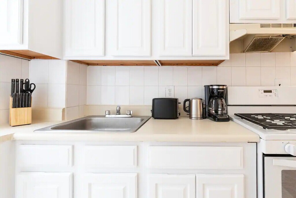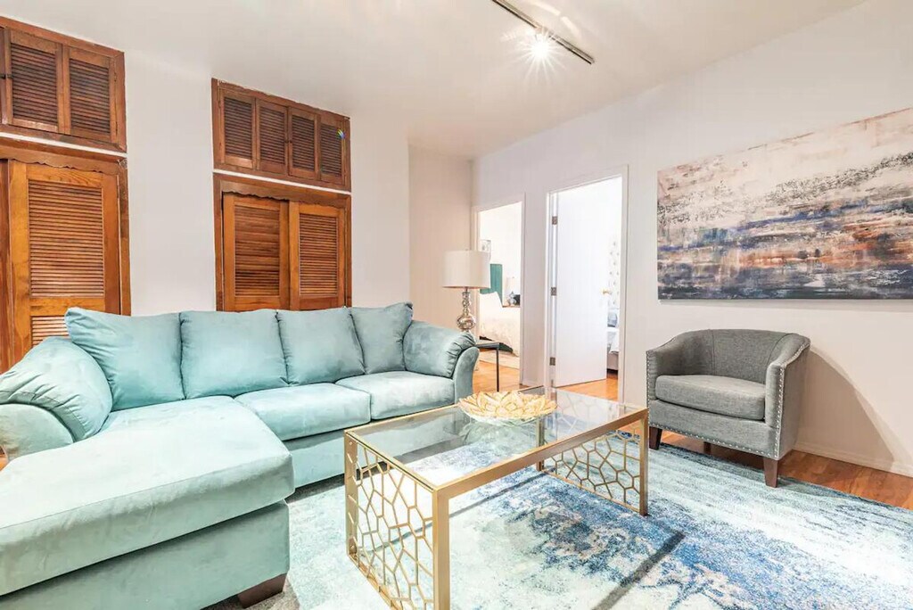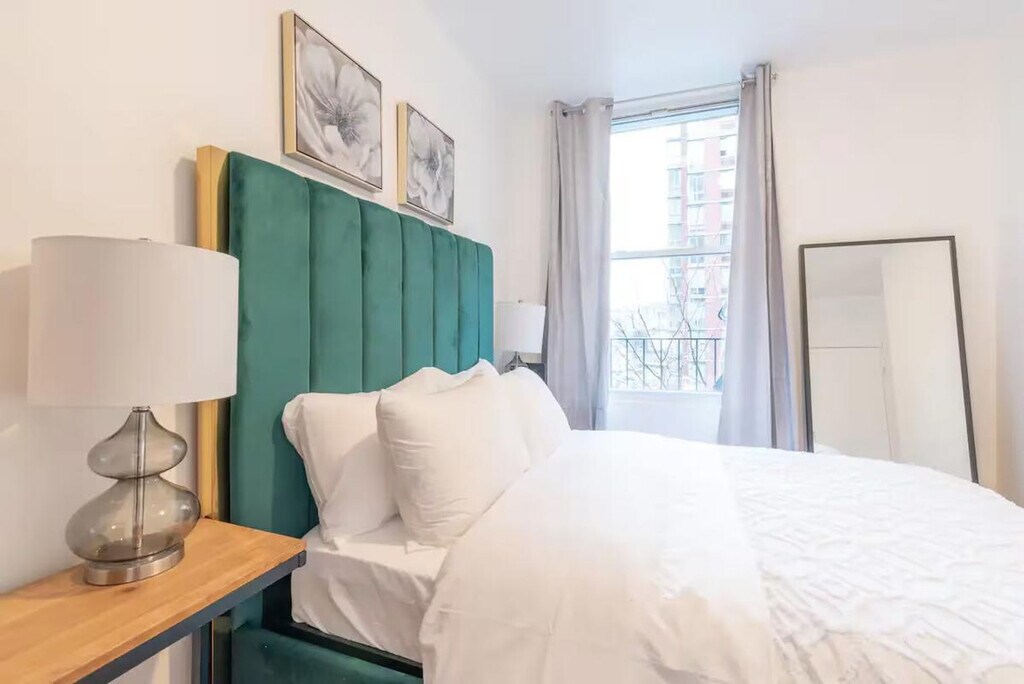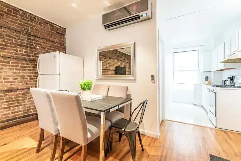 Furnished Habitat welcomes you to this modern 3-bedroom, 1-bathroom apartment, ideally located between Hudson Yards, Midtown West, and Midtown South, just a short walk from Times Square. Located on the 4th floor of a traditional NYC walk-up, accessible by three flights of stairs, this space provides the ideal NYC experience. Feel at home in this apartment. Experience the best of New York City in this beautifully furnished apartment. The full kitchen is equipped with modern appliances including a stove, oven, refrigerator, and all the cookware and utensils you’ll need to prepare meals during your stay. The dining table comfortably seats 6. This apartment’s location is unbeatable. You’ll be just a short stroll away from the excitement of Times Square, the luxury of Hudson Yards, and the convenience of Midtown West and Midtown South. Enjoy world-class shopping, dining, and entertainment, with iconic landmarks like the Empire State Building, Madison Square Garden, and the High Line all within easy reach. Plus, with access to multiple subway lines nearby, getting around the city couldn’t be easier. This is New York City, so typical city noises—such as traffic, sirens, and street activity—are to be expected, especially due to the central location near Times Square. While it adds to the authentic NYC experience, light sleepers may want to bring earplugs. The fireplace in Bedroom #2 is decorative and not operational.