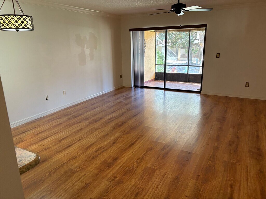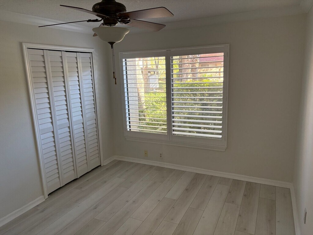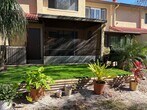 Cypress Club is a hidden gem in Highland Homeowners Association. Very well kept community with lush landscaping and a tropical feel. Community pool. Home has 1 bedroom on the first floor with bathroom, beautiful galley style kitchen with granite countertops and white cabinets as well as all appliances. Spacious living area with wood floor and screened porch/patio in the rear. So much landscaping in this area and view of the pool. Upstairs are 2 bedrooms with shared bath and a washer and dryer located in the hallway closet.The bedroom walls and floors are light colored and all windows have 3 inch shutter style treatment.