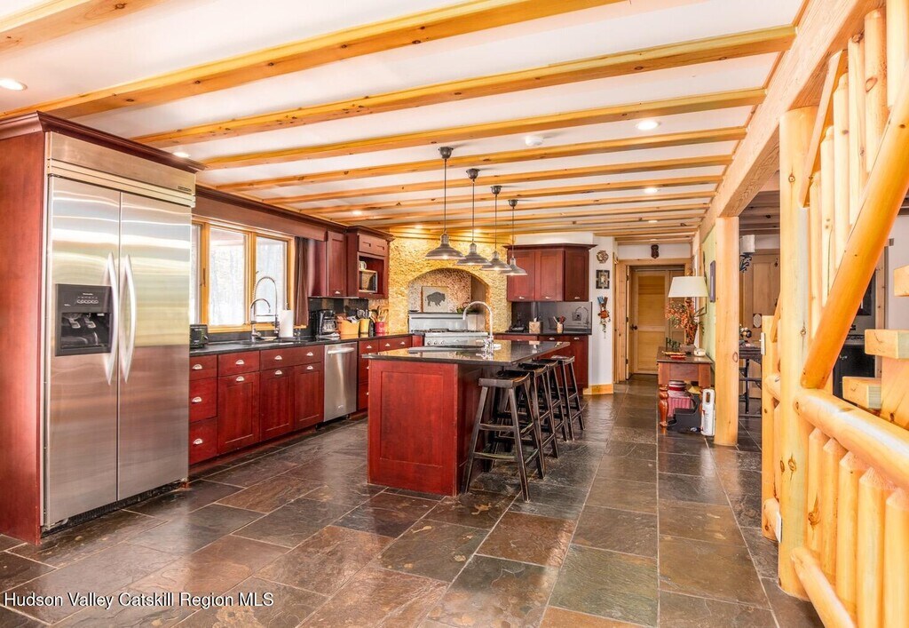 Stunning,very private,chateau style,2 story seasonal rental in Olivebridge. It is inside the ''blue line''of Catskill State Park. Surrounded by over 22 acres this beautiful log home is perfect for anyone looking for a true getaway in the pines. Close proximity to the Ashokan Reservoir,skiing,hiking,wonderful restaurants and shopping. Fully furnished with gorgeous high ceilings,a wood burning fireplace and large kitchen will immediately make you feel welcome. The primary bedroom has an absolutely luxurious spa style bathroom. There are 3 additional bathrooms. The gourmet kitchen with high quality stainless appliances and black granite countertops has everything you could want to create all your favorite meals. Three lovely porches outside and timber beams inside grace the cathedral ceilings. Wood,limestone and slate floors throughout the home. The two car garage is so wonderful to have,especially when it snows and bringing in groceries. Please note all utilities are included and the rent is 9,500 monthly. The security deposit is 3500,the cleaning Fee is 500.00,and pet fee is 250. The home is fully furnished. The owners can accomodate varying schedules for the rental dates.