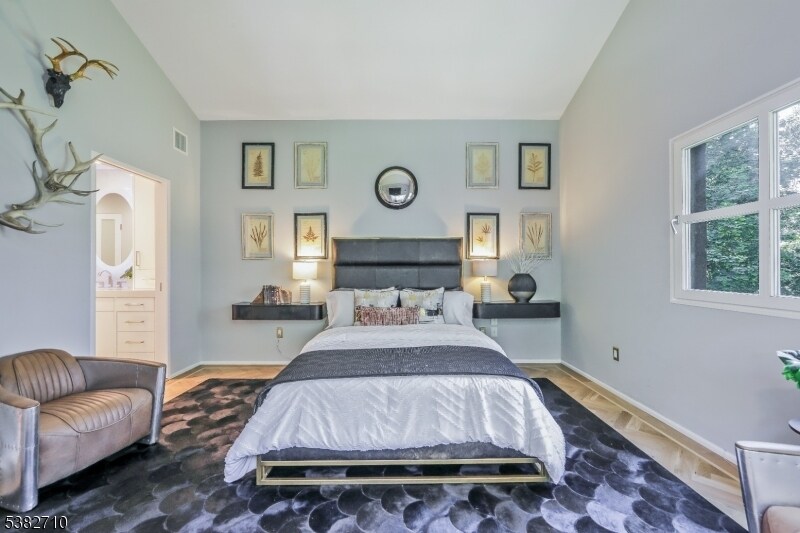 This luxury rental opportunity offers an award-winning modernist residence designed by UKZ Architects an architectural icon just 19 miles from NYC. Renovated in 2023, the home blends timeless design with super-chic, 21st-century updates. Soaring 10 to 12 ft ceilings and dramatic floor-to-ceiling windows flood the first floor with natural light and create seamless indoor-outdoor living. The landscaped garden, romantic wisteria, and expansive 34' x 23' Entertaining Terrace set the stage for unforgettable gatherings. The designer kitchen features Wolf appliances, Sub-Zero fridge, and Miele dishwasher. The spacious primary suite includes a cathedral ceiling and a newly designed 22-ft spa-like bath. Custom herringbone hardwood floors enhance the second level and family room. Additional highlights: updated powder room, wine room, cedar wardrobe closet, oversized two-car garage, and private motor court. Close to shopping, dining, Montclair, NYC transit, and Walker Park. A rare chance to lease a truly exceptional home that combines high design, comfort, and convenience.