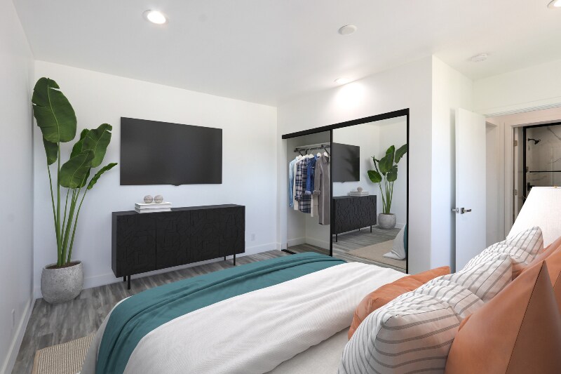 Property Id: 2093134 * Please note: the incredible deal / advertised price of $1,995 is based off a whopping $2,400 concession! (applied upfront and all at once) being factored into the monthly base rent due of $2,195 (TWO THOUSAND AND ONE HUNDRED NINETY FIVE DOLLARS) to show the savings. Restored and designed by a renowned LA designer, these modern luxury rental homes feature keyless entry door locks to spacious one and two-bedroom floor plans with newly renovated kitchen and bathrooms. The kitchen boasts sparkling white stone quartz countertops with brand new self-closing cabinetry and high-end stainless-steel refrigerators with matching gas cooktop with oven and microwave. iRing doorbells with a smart home video security camera are also included as well as a community washer and dryer room. Bathrooms feature porcelain tiled bathtubs and glass shower doors. Each rental home also includes central A/C cooling and heating w/ recessed lights & luxury style window blinds and distressed wood plank floors.