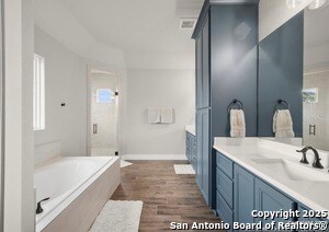 Custom home for lease in a gated community on a 1-acre lot in Castroville! This spacious residence offers approx. 3,300+ sq ft, 3 bedrooms, 3.5 baths, a dedicated office, flex space, and a 3-car garage. Features include an open-concept layout, abundant natural light, quartz countertops, custom cabinetry, oversized tile flooring, coffered ceilings, and a gourmet kitchen with double ovens, large island, and oversized pantry. Each bedroom includes an en-suite bath and walk-in closet. Enjoy outdoor living on the covered patio with wood-burning fireplace and expansive backyard. Rare lease opportunity offering privacy, space, and security just outside San Antonio.