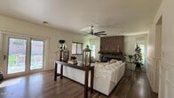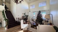 This five bedroom three bathroom home offers a flexible living space with an open layout and high ceilings. The main living areas feature wood style flooring,neutral tones,custom wainscoting,and a fireplace that anchors the family room. The kitchen includes granite countertops,stainless steel appliances,an island,pantry,and a breakfast nook with bay windows. A bedroom and full bath on the main level provide added flexibility. Upstairs,the primary suite features double door entry,balcony access,a walk in closet,and a bathroom with dual vanities. Washer and dryer are included. The home also offers a three car garage and low maintenance landscaping. Convenient access to schools,shopping,dining,and local parks within about three miles. Pet policy: dogs allowed,no cats.