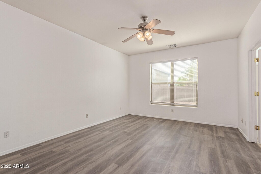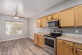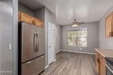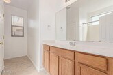 Nice neighborhood. This single level rental home has a great floor plan with 4 nice sized bedrooms and 2 full baths. Easy to care floors - no carpet. (Bedroom carpet replaced with new wood plank) Enjoy family meals in front of the bay window in the kitchen. The kitchen has loads of light,neutral toned cabinets,stainless appliances including a french door Maytag refrigerator. From the great room,you can head out to the backyard and enjoy our AZ weather under the covered patio surrounded by low maintenance desert landscaping. The master suite offers a large walk in closet. Ceiling fans and dual pane windows through out. No extra monthly fees,just the rent. Landlord is very nice and makes repairs quickly. Pets might be considered. Good credit and min. 5k monthly income required.