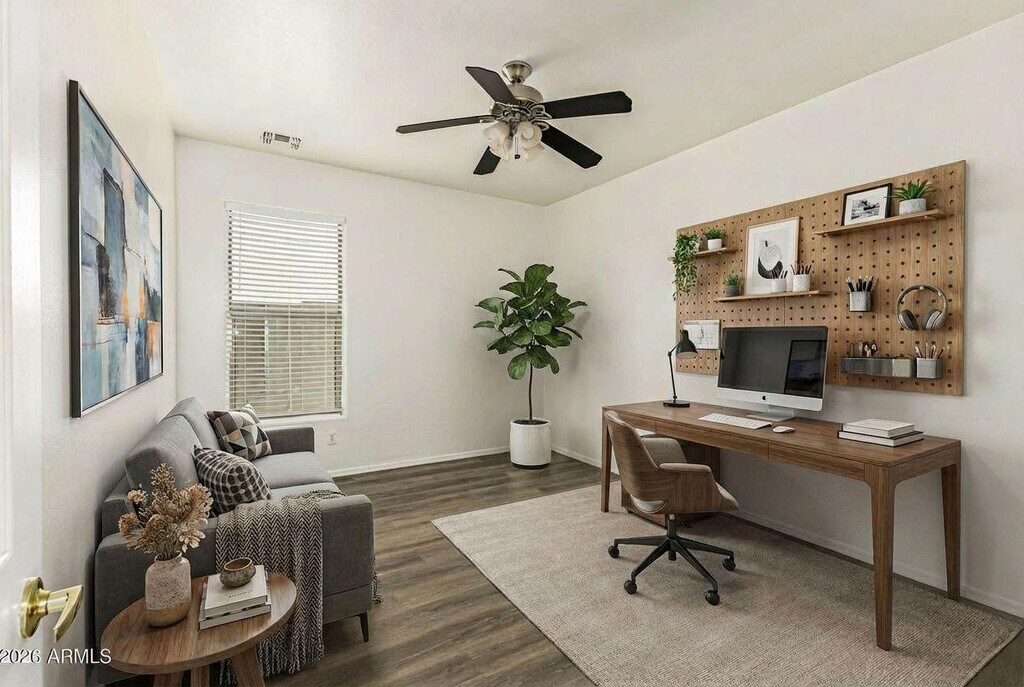 Good credit,good rental history,no evictions,and 5k monthly income required. Nice neighborhood. This single level rental home has a great floor plan with 4 bedrooms and 2 full baths. Easy to care floors - no carpet. Enjoy family meals in front of the bay window in the kitchen. The kitchen has loads of light,neutral toned cabinets,stainless appliances including a french door Maytag refrigerator. From the great room,you can head out to the backyard and enjoy our AZ weather under the covered patio surrounded by low maintenance desert landscaping. The master suite offers a large walk in closet. Ceiling fans and dual pane windows through out. No extra monthly fees,just the rent. Landlord is very nice and makes repairs quickly. Pets might be considered.