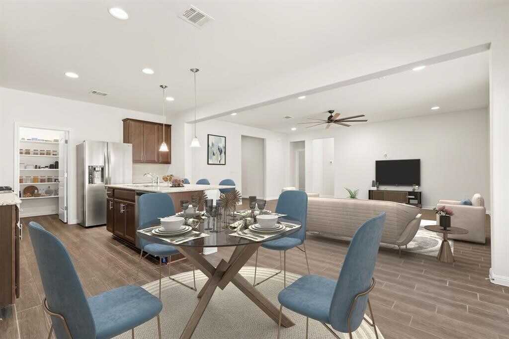 Charming 4 Bed, 2 Bath single story in Highlands at Mayfield Ranch Neighborhood. SS Refrigerator, Washer & dryer included!! Bright n open living room with wood look tile flooring, functional kitchen with granite counters and SS appliances, Spacious primary bedroom & primary bath with dual vanities and walk in shower, 3 guest bedrooms and a guest bath are some of the highlights of the house. Private backyard with a covered patio makes entertaining a breeze. Neighborhood Amenities include Pool and playground.. MLS ID 5247293