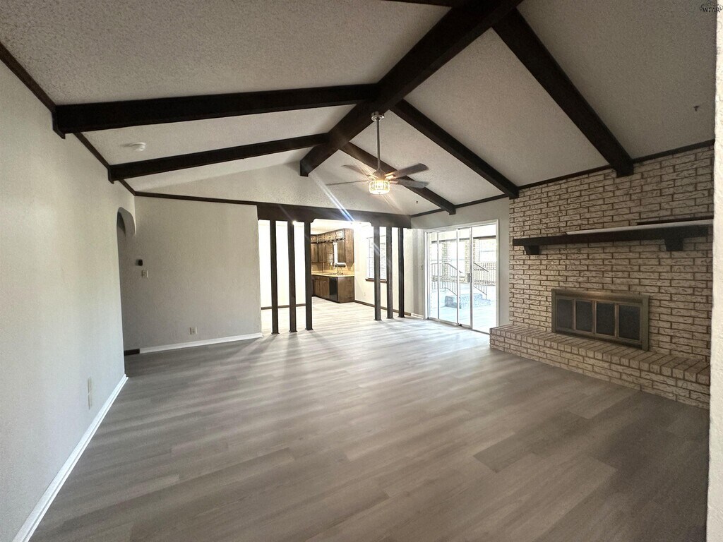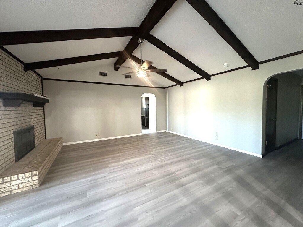 Nice 3 bedroom, 2 bath home For Lease in Briargate. Recently painted and vinyl plank flooring throughout w/new light fixtures and mini blinds. Living area has wood beamed ceiling and wood-burning fireplace. Kitchen has refrigerator, dishwasher, built-in microwave, stove/oven & formal dining area. LARGE bonus room that would make a great 2nd living area, playroom/office with storm shelter. New privacy fence. $47 app fee for anyone 18+yrs-checks credit, criminal & eviction history. $1990 security deposit.