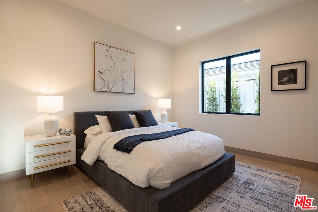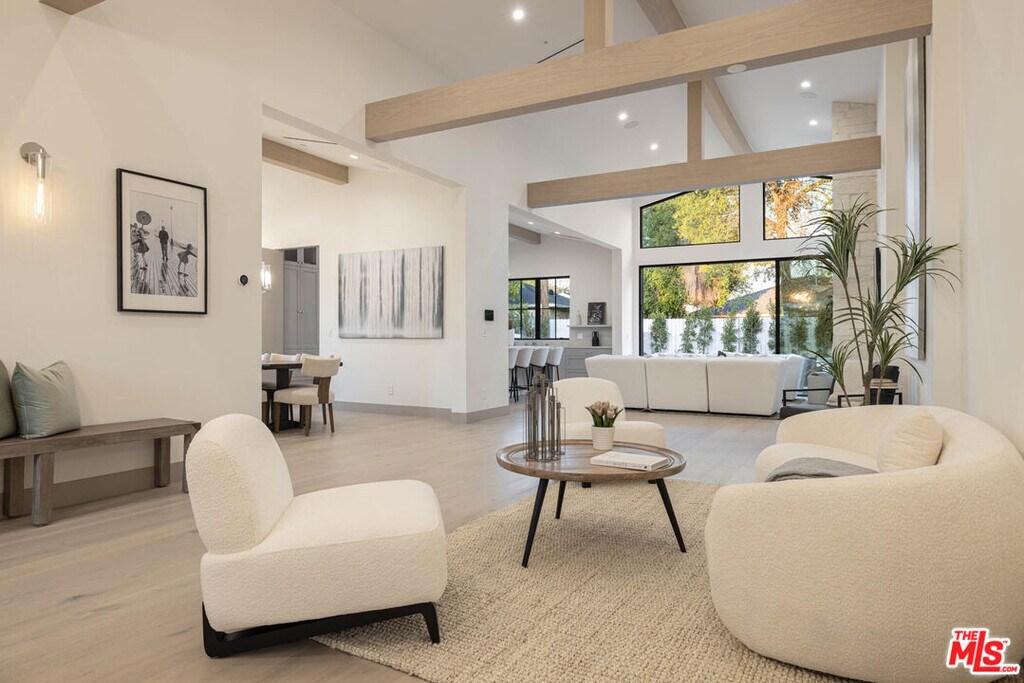 Located moments from Erewhon, Equinox, and the newly reimagined Sportsmen's Lodge, this simple yet sophisticated single-story modern farmhouse offers effortless luxury in the heart of Sherman Oaks. Thoughtfully designed on one level, the home features 4 spacious en-suite bedrooms and 4.5 bathrooms. A dramatic entry foyer anchors the flow, leading to beautifully proportioned living spaces. The gourmet chef's kitchen is a showpiece, appointed with custom quartzite countertops, a generous center island, La Cornue range, and Thermador appliances ideal for both everyday cooking and elevated entertaining. The serene primary suite is a private retreat with a generous wardrobe, spa-inspired bath with a soaking tub, double shower, and refined natural stone finishes. Each additional bedroom is en-suite, highlighted by bespoke plasterwork, artisanal tile, and refined stone details. Designed for California living, the property is secured by a gated front yard and features a resort-style rear yard with a pool, spa, and outdoor kitchen perfect for gatherings with friends and family. Modern amenities include solar panels and a Control4 smart home system for comfort and convenience. An exceptional blend of style, function, and location, this is Sherman Oaks living at its finest. MLS# 25624777