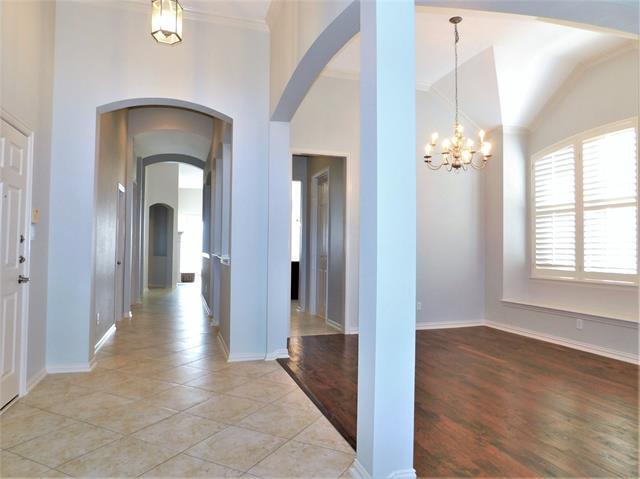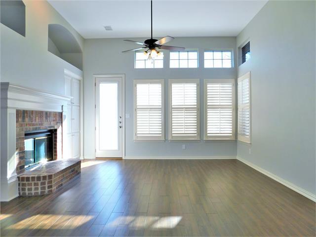 Spacious, open, and updated 4-2-2 one-story home in desired Wellington of Flower Mound! Hardwood floors in formals, plantation shutters throughout, some rooms have hand troweled walls. Kitchen has granite, island, butler's pantry. Separate formals in front. Neutral colors. Family room in back with art niches, built-in cabinets, and gas log fireplace. Master Suite has sitting area, separate vanities, and walk-in closet. Owner pays HOA dues.
