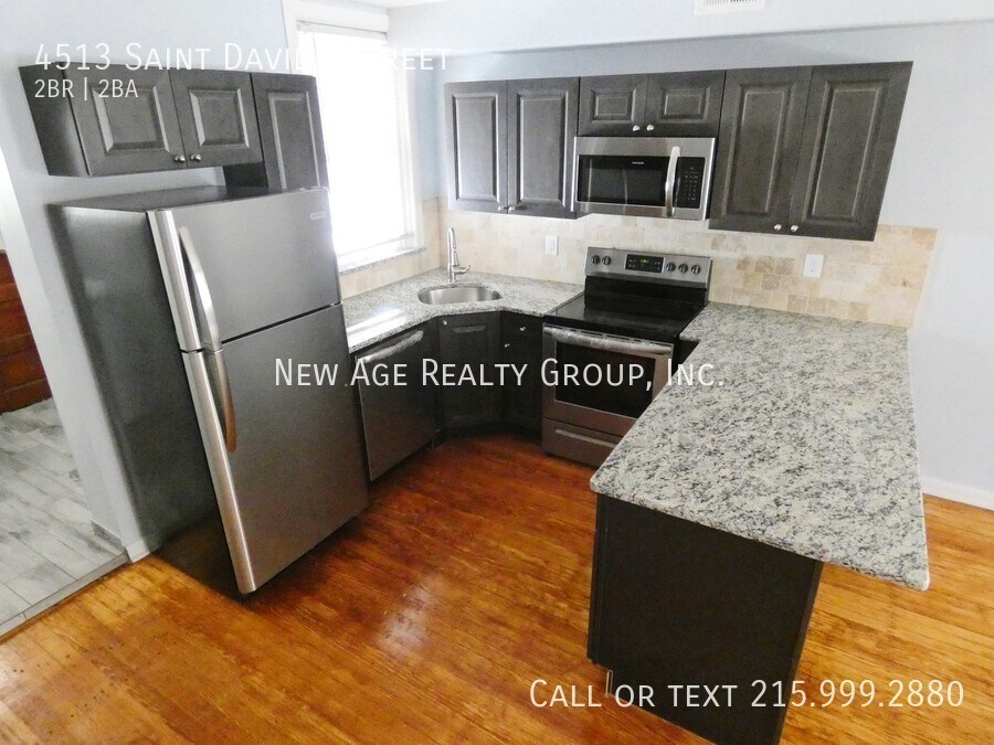Newly renovated 2 bedroom/1.5 bath home for rent in Manayunk. Refinished original hardwood floors throughout, new central air and replacement windows. Enter into the open concept living space with a brand new kitchen featuring granite countertops, stainless steel appliances and a large breakfast bar perfect for entertaining. The living space has room for a dining table and sitting area if desired. The first floor also has a half bath and laundry area which gives access to the private back patio- perfect for bbqs and entertaining! Upstairs are two large bedrooms with an abundant amount of closet space. The full bathroom is large and everything is completely brand new! There is also an unfinished basement for storage. This house is located just steps from the Manayunk station on the Regional Rail Norristown Line, Pretzel Park, Manayunk Towpath and all of the restaurants and shops along famous Main Street in Manayunk. Tenants Responsible for all Utilities. Tenants must also obtain renters insurance! Pet Policy: Cats welcomed with $300 non-refundable pet fee, sorry no dogs. All New Age tenants will be automatically enrolled in a Resident Benefits Package (RBP) for $25 per month, which includes $5k in property damage reimbursement, credit building through timely rent payments, a resident rewards program, and so much more! These benefits are designed to improve your living experience and put money back into your pockets. All information about this package can be found at