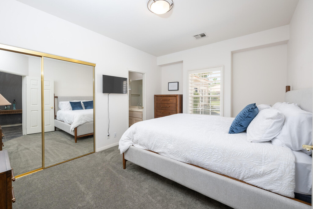Now Booking winter Oct-Dec 2025 and April 2026!!! Not available Jan-Feb-Mar. Welcome to 45140 Coeur Dalene,a popular Malibu model w/ detached casita offers a total of 4 bedrooms and 4 bathrooms with a custom pool & spa overlooking the 3rd green at the Bog Rock GC at Indian Springs. When walking in,you will be impressed with the open great room finished with upgraded flooring matched with a designer paint scheme making a spectacular living space. This model is popular because of numerous windows and big sliding glass doors on the rear making a bright home,while also offering views of the rear yard and golf course. The owners suite is situated on the rear of the home with pool & patio access and views. Out back you will appreciate the extended patio,aluma-wood patio cover,and the custom pebble-tek pool & spa! This home offers plenty of living space for entertaining and bedrooms for family or house guests! Indian Springs is a local and snowbird favorite for its great location ''in-town'' just a few blocks from La Quinta and a few minutes from Indian Wells,PGA West,and Palm Desert. The Big Rock GC & Pub at Indian Springs offers great food,entertainment,and golf at reasonable rates. Rent includes utility allowance,cable tv,internet,use of two ''Residents Clubs'' with fitness centers,heated community swimming pools & hot tubs. Check out the VR Tour! You will love this home and love spending your winter at Indian Springs! Nov-Dec: $6,000 - Jan-March: $8,500 - April $9,000 - May-Oct: Call. Other fees include $500 reservation deposit,$2,500 security deposit,$250 cleaning fee,and $250 pet fee if approved