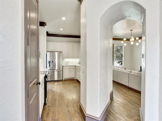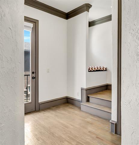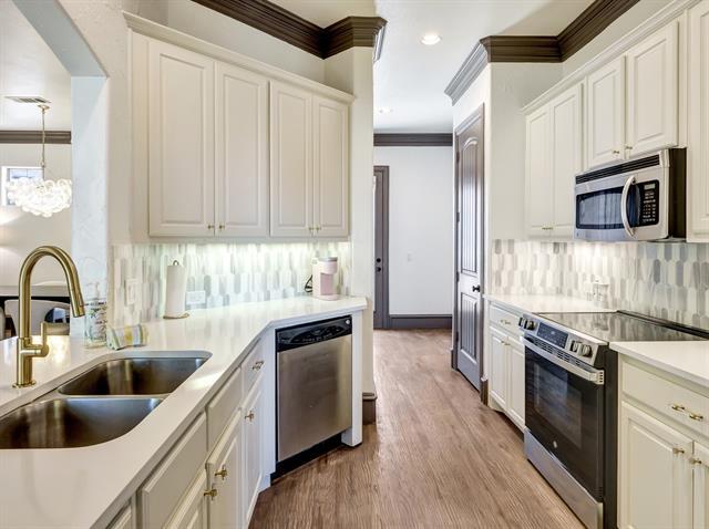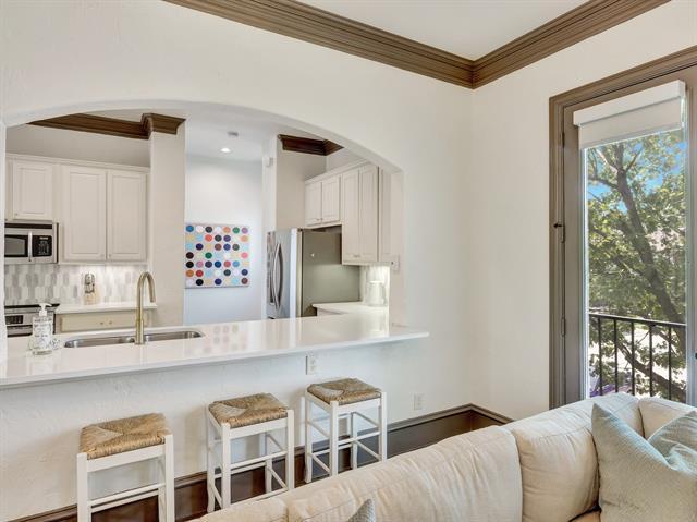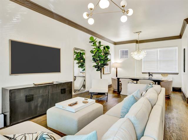 Beautiful Uptown East 3-story condo nestled in a small, GATED community. It's just minutes away from prime hotspots including Cityplace, Knox Henderson, Uptown, Downtown, Deep Ellum and Greeneville Ave. This Dallas gem was remodeled in 2025 and features soaring ceilings, abundant windows for flowing natural light, quartz kitchen countertops, marble shower in master, leathered marble countertops in all bathrooms, elegant extensive crown and base mouldings, fresh paint throughout, hand scraped hardwood floors, Smart thermostats, upgraded plumbing fixtures and attached 2 car garage. My favorate--the highly desired, sophisticated Visual Comfort lighting!! The backyard is shaded with turf and 8 foot board-on-board wood fence for added privacy. Stunning view of downtown from the 3rd floor! NEW Rheem hvac installed April 2022.