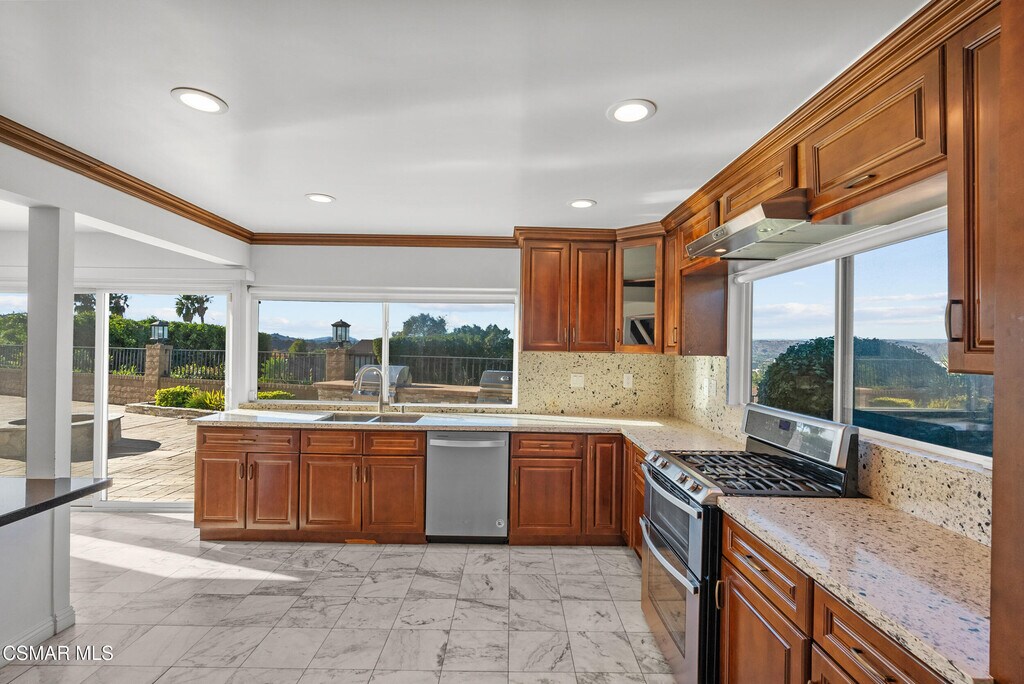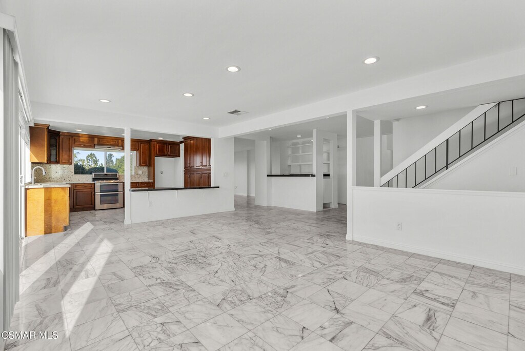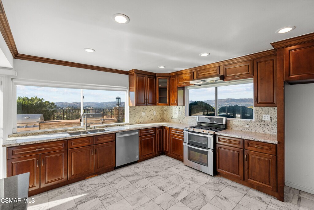 Welcome to 4515 Poe Ave! The stunning home that boasts a 180-degree panoramic view of Los Angeles! Nestled in the desirable area of Woodland Hills, this exquisite 6-bedroom, 4-bathroom property offers nearly 3,900 square feet of comfortable living space. Step inside to discover a spacious living room featuring a cozy fireplace, perfect for gatherings or quiet evenings. The remodeled kitchen is a chef's dream, showcasing elegant granite countertops, marble flooring, and breathtaking city views. This culinary haven seamlessly flows into the family room and dining area, which also feature marble flooring--ideal for entertaining guests or enjoying everyday meals. Conveniently, there's a bedroom and two full bathrooms on the main floor, perfect for guests. Upstairs, you'll find four well-appointed bedrooms, an additional full bathroom, and a versatile loft that can serve as an office or library. The expansive primary suite offers a walk-in closet, an en-suite full bathroom, and access to a private balcony with incredible views of Los Angeles. Outside, the generous backyard is designed for relaxation and entertainment, featuring a pool, spa, gazebo, and built-in BBQ--perfect for al fresco dining and outdoor fun. Parking is effortless with a spacious 3-car garage and an expansive private driveway. Located close to shopping destinations like Target and just a few streets away from the Woodland Hills Country Club, this home combines convenience with luxury. Community amenities include a clubhouse, pool, tennis courts, and access to hiking and biking trails. Don't miss the chance to make this beautiful home yours and experience the perfect blend of tranquility and luxury!