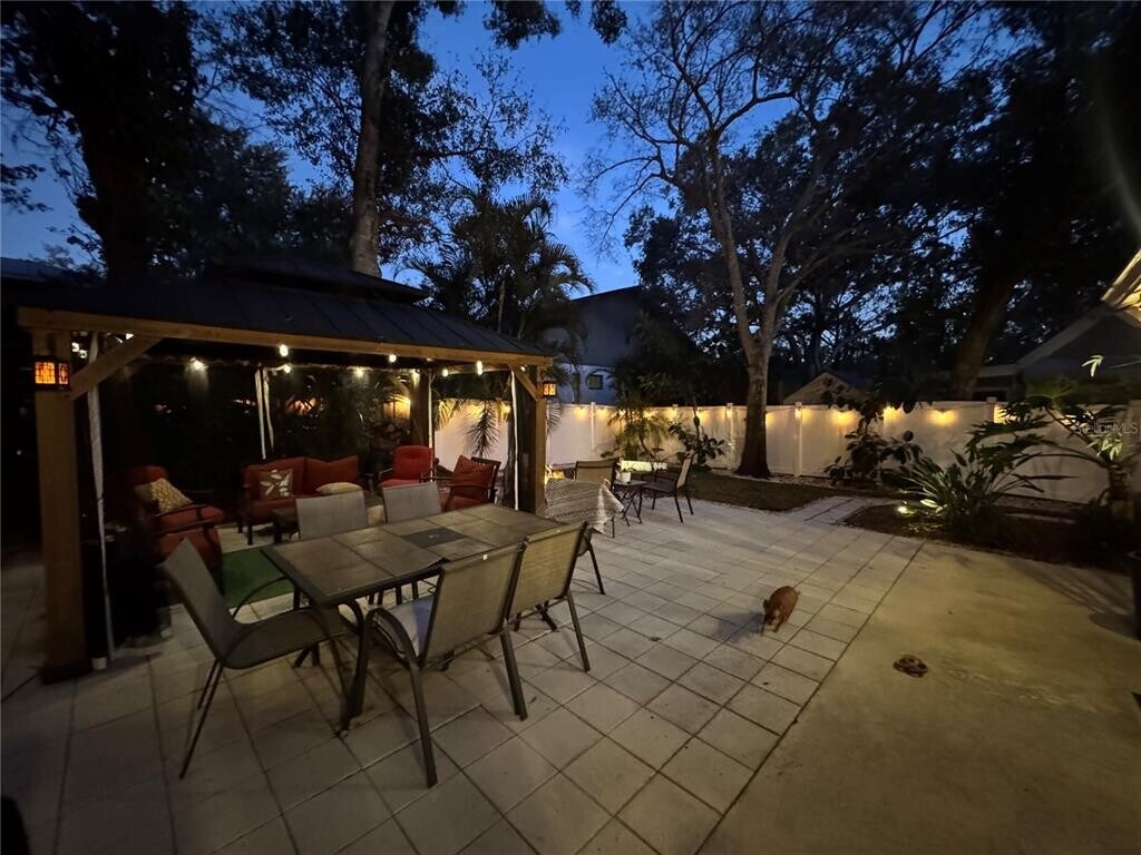 This beautiful 3/2 home is located in the Flora Villa area in Sarasota Florida. This home is 10 minutes from downtown,10 minutes from the beach,minutes to your favorite grocery stores and restaurants,and a beautiful family park a block away. Some of Sarasota’s top K-12 schools are also located in this district. Nestled along a quiet canopy tree road,this home has charm and character. An over sized detached garage features the washer/dryer and plenty of room for tools,storage,or activities. As you walk into the front entry way,you’ll discover a newly built covered wooden porch and a private courtyard built between the house and garage. On the lower level portion of this 1,574 sq ft,two story home you’ll find an updated open kitchen and beautiful tile throughout. Take a step down into the spacious living room and you’ll be met with 3 wide sliders to the back yard and two skylights filtering in sunlight. A bedroom with a connected bathroom is also located on the lower level with a private porch entrance. As you go upstairs and step onto the wooden vinyl flooring you’ll find an additional bedroom with a connected bathroom and a private upper porch view. Across the hallway is a large bedroom with an oversized walk-in closet. The backyard has been completely re-done all the way down to the beautiful details. A large paved area supports an 11x13 gazebo,a rock fire pit,a walkway to the front gate,and fully fenced in yard for privacy. The natural vegetation and plant life truly give it an oasis feel. A new roof and hurricane windows were completed in 2025 to give you an added feeling of safety. This home has been tremendously loved and is looking for a new family to take care of it. A background check and application will be applied. MLS# A4684337