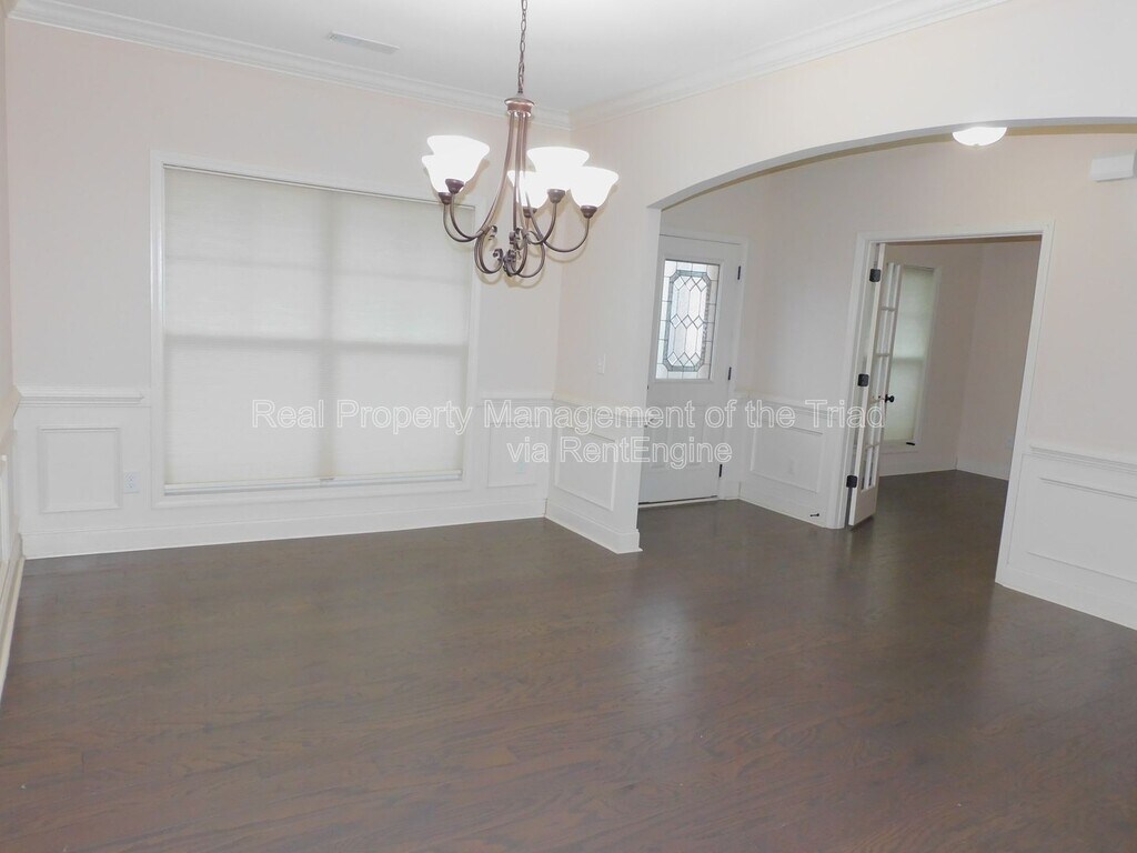 What an opportunity! Amazing two-story 5 bedroom 4 bathroom home equipped with wood floors that span the main level and accentuate the open floor plan. Large great room downstairs has fireplace and leads out to a magnificent sunroom. Chef's kitchen fully equipped with a full set of stainless steel appliances. Formal dining room and den are available downstairs. Full bonus room upstairs with projection screen at the ready! Extra large primary bedroom with a spacious primary bath and closet. The backyard is completely fenced in! This property is zoned for Southwest Guilford Elementary/Middle/High School. 24 Month Lease, Security Deposit, and Lease Administration fee applies. This home could be security deposit free for qualified applicants via Obligo! Please visit our website at to schedule a showing and apply. AVOID RENTAL SCAMS: Real Property Management is a licensed Real Estate Agency that exclusively markets and represents this listing. We do not advertise on Craigslist. We would never ask you to wire money, request funds through a payment app for initial rent, deposits, or take the key after your showing to move-in. AMENITIES: * Community Pool * Sunroom * Wood Floors * Fenced Backyard * Tray Ceiling * Formal Dining Room * Large Den * Large Eat-in Kitchen * Open floor plan * Granite countertops By submitting your information on this page you consent to being contacted by the Property Manager and RentEngine via SMS, phone, or email.
