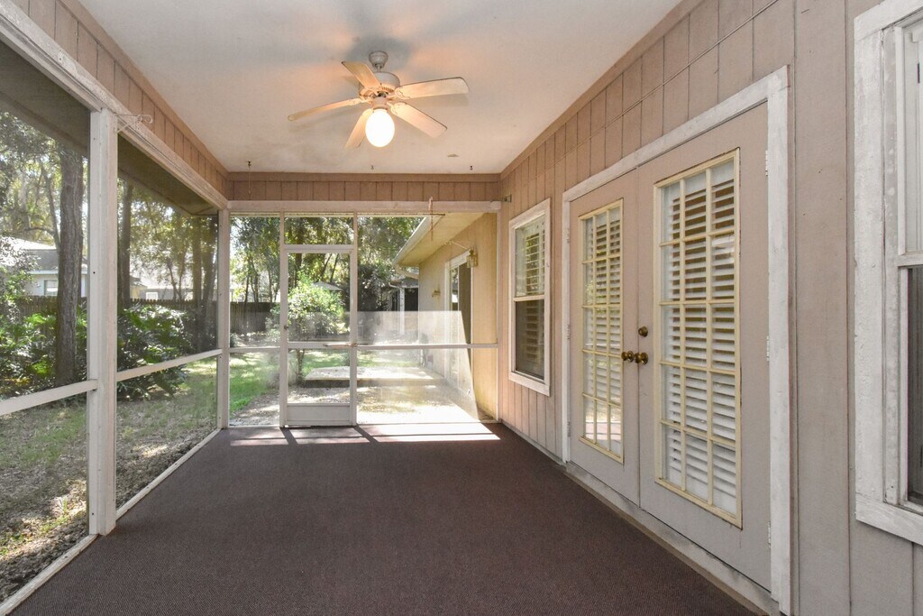 Welcome to this updated 3BR/2BA home in the sought-after Capri neighborhood of NW Gainesville. Thoughtfully refreshed throughout, this home features plantation shutters, modern lighting, updated baths, and custom laundry storage. The bright kitchen offers ample cabinetry, stainless steel appliances, and a cozy breakfast nook overlooking the backyard, with easy access to a screened-in porch. Enjoy a spacious living room with a fireplace and French doors—perfect for relaxing or entertaining. A split floor plan provides a private primary suite with backyard access, an open wood deck, a spa-like bath with double vanities, slate-tiled shower, and a large walk-in closet. Additional highlights include ceiling fans throughout, a 2-car garage, and washer/dryer included (not warranted). Capri residents enjoy access to a clubhouse, pool, and tennis courts, completing the ideal Gainesville lifestyle. Upon approval, any decision not to execute the lease will result in a forfeiture of the "Holding fee" which is equal to one month's rent plus the forfeiture of the Administration fee of $250.00 $2300/MO & $2300 S/D