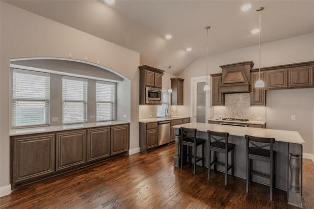 Stunning Home on a private lot with no homes behind! Features 4 bedrooms & 3 bathrooms; Mahogany front door with rain-glass & wrought iron insert Formal Dining Room; Study; Game Room; Gourmet Deluxe Kitchen with Whirlpool Gold Appliances, CUSTOM cabinets, GRANITE counters; HARDWOOD FLOORS in living areas; over sized upgraded tiles and accents throughout; GRANITE in all bathrooms; STONE & GAS Fireplace; SOARING CEILINGS & an abundance of light in this open plan! Walking trail jogging course next to the house and Plano East high school is in walking distance.