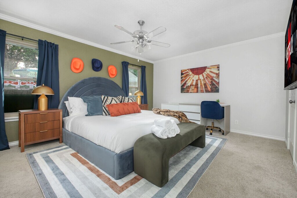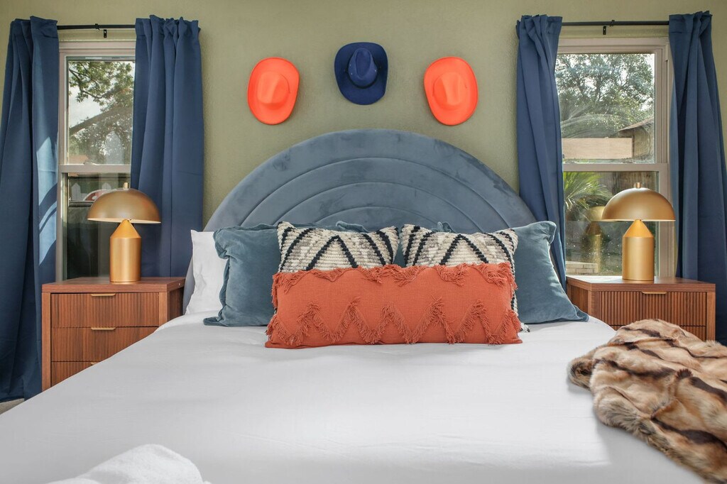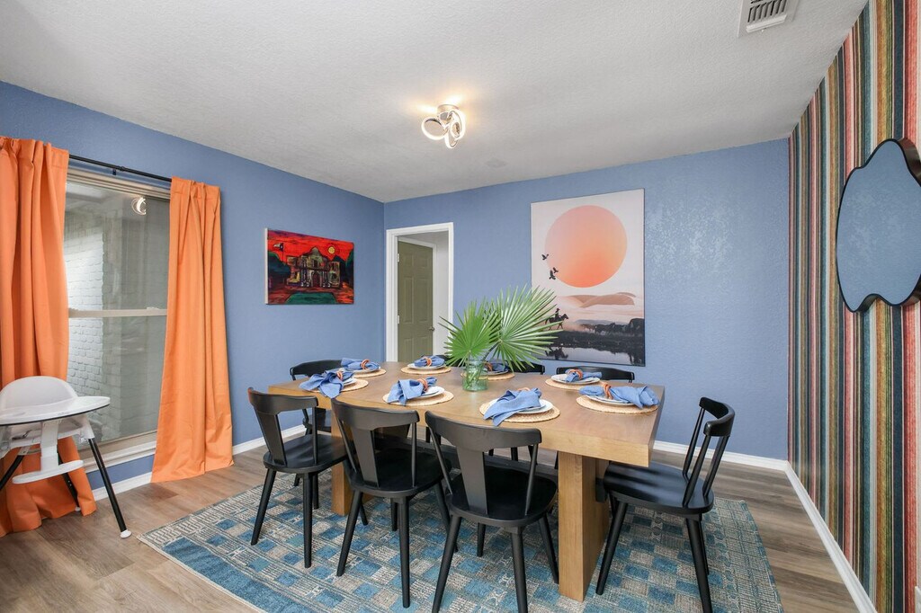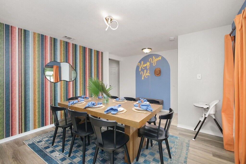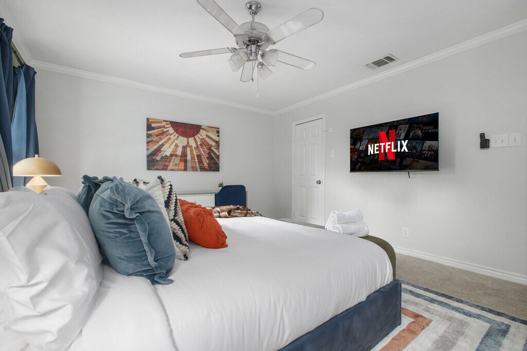 This 3-bedroom home in San Antonio, TX, is packed with amenities for an unforgettable vacation. Feel at home with features like a private pool, hot tub, fire pit, outdoor patio and dining area, BBQ grill, and ample parking. Inside, enjoy a fully stocked kitchen, TVs in each bedroom, and a dedicated workspace. Tucked away in a quiet neighborhood, this spacious 3-bedroom, 2-bathroom home accommodates up to 12 guests, making it perfect for family vacations or group trips. The game area offers ping pong, pool, and arcade games, while the backyard oasis includes a pool, hot tub, fire pit, and outdoor games for sunny Texas days and starry nights. Up to 2 dogs are allowed for $125 per stay, but no cats, please. Parking is available for up to 4 cars in the driveway and street. Explore nearby attractions like the San Antonio Zoo, River Walk, and The Alamo, all within 10 miles. Enjoy dining at the Pearl District or Historic Market Square, and discover the arts at La Villita Historic Arts Village. Conveniently get around by car or rideshare services like Uber and Lyft. Check-in is at 4pm and check-out is at 10am. Quiet hours are from 10pm to 8am. No parties are allowed, and violations may result in immediate termination of the stay. An exterior camera is installed for monitoring the cleaning team. Guests must be 21 years or older to book this property. Includes a dedicated workspace in the main bedroom, equipped with a desk and chair. A laptop computer is not included. Registration Number: STR-25-13500720 [SI]
