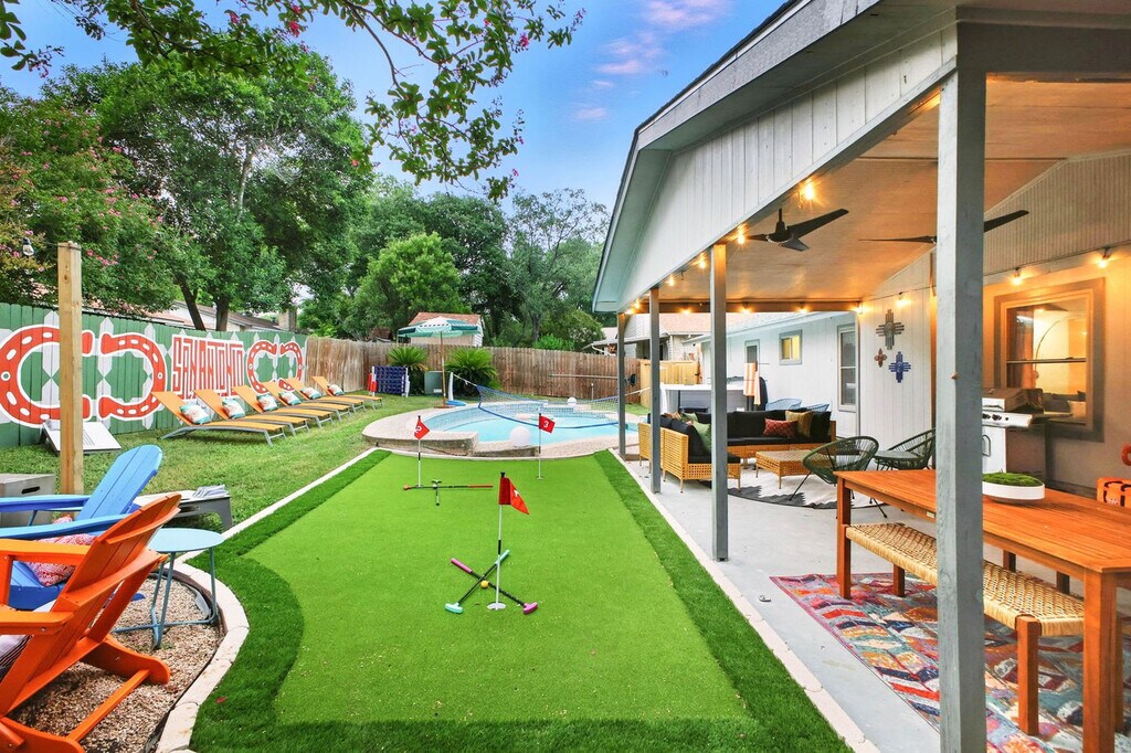The advertised rate of $5,765/month is the lowest available price, based on a 1 month(s) and 2 day(s) stay with a move-in date of February 24, 2026. Rates vary depending on the duration of stay, season, and other parameters. For exact pricing and additional pricing components, please visit our website and enter your desired move-in and move-out dates. The rate is applicable when billed upfront; it can be higher if billed in multiple payments. This 3-bedroom home in San Antonio, TX, is packed with amenities for an unforgettable vacation. Feel at home with features like a private pool, hot tub, fire pit, outdoor patio and dining area, BBQ grill, and ample parking. Inside, enjoy a fully stocked kitchen, TVs in each bedroom, and a dedicated workspace. Tucked away in a quiet neighborhood, this spacious 3-bedroom, 2-bathroom home accommodates up to 12 guests, making it perfect for family vacations or group trips. The game area offers ping pong, pool, and arcade games, while the backyard oasis includes a pool, hot tub, fire pit, and outdoor games for sunny Texas days and starry nights. Up to 2 dogs are allowed for $125 per stay, but no cats, please. Parking is available for up to 4 cars in the driveway and street. Explore nearby attractions like the San Antonio Zoo, River Walk, and The Alamo, all within 10 miles. Enjoy dining at the Pearl District or Historic Market Square, and discover the arts at La Villita Historic Arts Village. Conveniently get around by car or rideshare services like Uber and Lyft. Check-in is at 4pm and check-out is at 10am. Quiet hours are from 10pm to 8am. No parties are allowed, and violations may result in immediate termination of the stay. An exterior camera is installed for monitoring the cleaning team. Guests must be 21 years or older to book this property. Includes a dedicated workspace in the main bedroom, equipped with a desk and chair. A laptop computer is not included. Registration Number: STR-25-13500720 [SI]