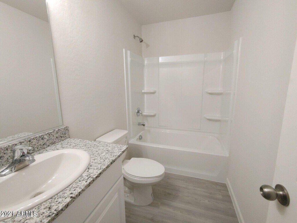 Newer Home in great culdesac lot! Beautiful new 3 bedrooms,2 bath spacious home,great room concept living,open kitchen with granite countertops,nice size rooms and large walk in closets,dual sinks,wood like flooring,and much more. Open floor plan that allows for you to entertain guests,while you are in your open kitchen with all new appliances. Landscaped front and back yard and complete with oversize covered patio to enjoy the beautiful AZ sunsets! All new appliances (refrigerator,dishwasher,microwave,and stove). Call today to view so you don't miss this one!