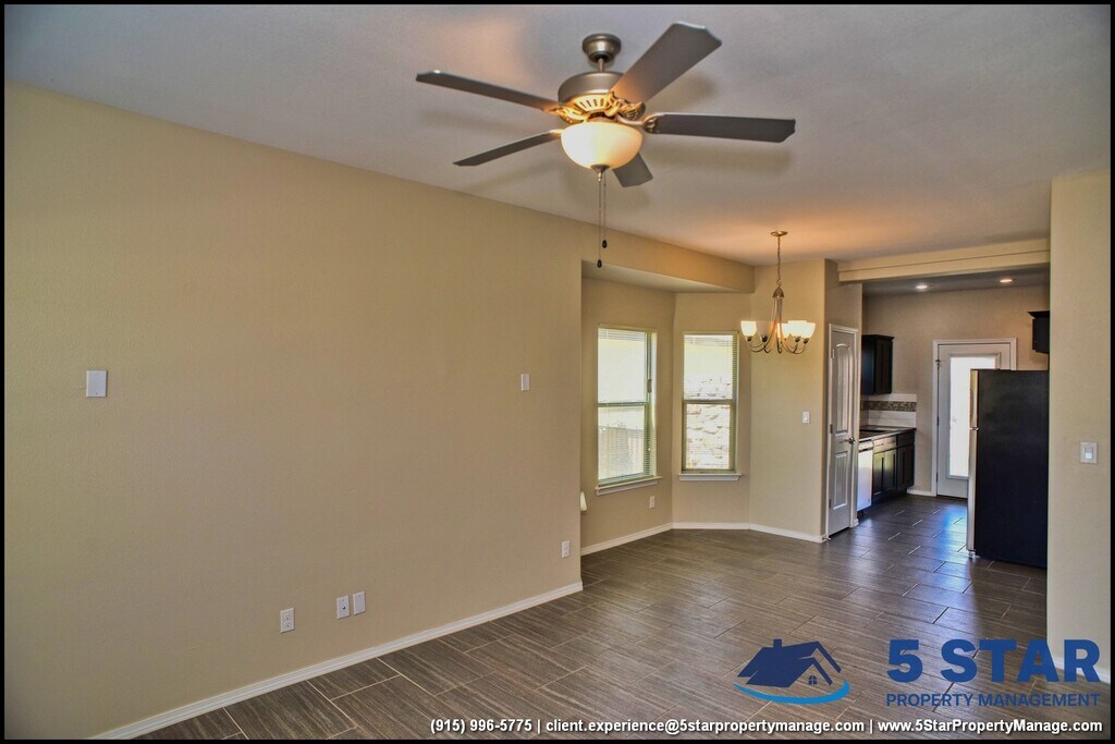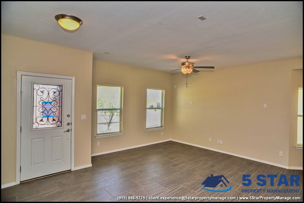 Stunning and well-maintained 3 bed and 2 bath home offers a spacious layout featuring a bright living area with tile flooring and a ceiling fan for added comfort. The kitchen is well-equipped with modern appliances, including a gas stove, stainless steel refrigerator, and stylish cabinetry. The primary bedroom features plush carpeting and an en-suite bath with a walk-in shower. The backyard offers ample space, perfect for outdoor relaxation or gardening. Conveniently located with easy access to nearby amenities, this home blends comfort and style in a desirable location. Deposit-Free Renting service to Obligo qualified renters, fees may apply. Showing: Contact a local real estate agent to schedule showing. By: 5 Star Property Management | CANUTILLO Texas Rentals | CANUTILLO Property Management | Property Management in CANUTILLO *Important: Information is deemed reliable but not guaranteed. All information is submitted subject to errors, omissions, change of price before the lease, or withdrawal without notice. For Showings information and availability, please call at By: 5 Star Property Management | CANUTILLO Texas Rentals | CANUTILLO Property Management | Property Management in CANUTILLO *Important: Information is deemed reliable but not guaranteed. All information is submitted subject to errors, omissions, change of price before the lease, or withdrawal without notice.
