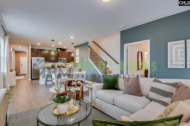 Welcome home to Copper Crest Townhomes, affordable, low maintenance living with easy access to Lexington's wonderful dining, shopping & entertainment options! The masterfully designed Burke plan is a must see & sure to check all the boxes. Step inside into the open foyer that guides you into a spacious living area perfect for relaxing or entertaining. The designer finished kitchen overlooks a large dining space & is complete with gorgeous pendant lights, tile backsplash, walk-in pantry, and plenty of counter space for prepping meals. Nestled away on the main floor is your primary suite where you can rest easily & enjoy a huge walk in closet and private bathroom. Only a few steps away from the primary suite, you will find additional living space for rest and relaxation on your outdoor covered patio. Step upstairs and be amazed by the additional living space that this townhome provides! You will find 3 perfectly situated guest rooms all with walk in closets and a cozy flex space making for the perfect home office, sitting room or play area. Don't miss your opportunity to own a new construction home conveniently located near interstate 20, top rated schools, Lake Murray & more. **BEWARE OF SCAMMERS! THIS PROPERTY IS ONLY BEING LISTED BY MIDLANDS PROPERTY MANAGEMENT. WE DO NOT ASK FOR MONEY TO BE WIRED, CASH APP, VENMO, ETC. WE DO NOT ADVERTISE ON CRAIG'S LIST OR MARKETPLACE. CALL WITH QUESTIONS!** Contact us to schedule a showing.
