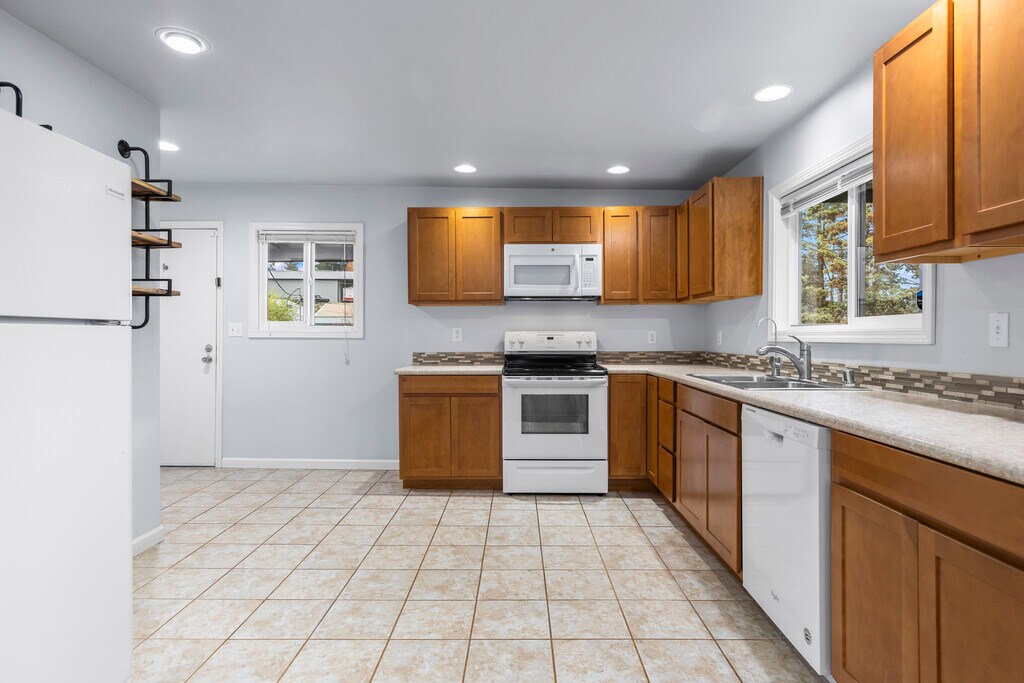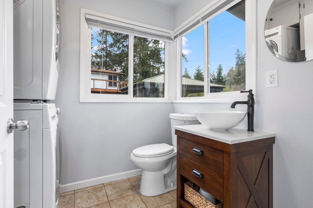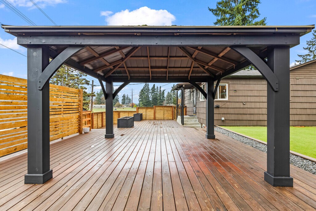 Welcome home to this charming 2-bedroom, 1.5-bath home with a dedicated office/flex space in the desirable Waller neighborhood! The home features a spacious open-concept living area with durable vinyl and laminate flooring throughout. Stay comfortable year-round with an efficient mini-split system providing both heating and A/C. The large kitchen comes fully equipped with all appliances included, ready for your move-in. Outside, you'll find a true retreat- a large fenced yard featuring astroturf for low-maintenance greenery, a spacious deck, gazebo, and raised garden beds- perfect for relaxing, entertaining, or gardening. The property also includes an oversized two-car garage/workshop, offering tons of storage and workspace for projects, hobbies, or parking. Located just 10 minutes from downtown Puyallup (Sounder Station) and 10 minutes from downtown Tacoma, you'll enjoy the best of both worlds - close to everything, yet peaceful and rural in feel. Situated in the Puyallup School District, this home offers an excellent setting for commuters, families, and professionals alike.