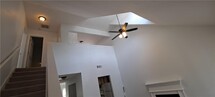 THE PERFECT HOME FOR YOU. Freshly painted,lvp flooring on main and new carpet upsstairs. Two story ceiling in living area with tons of natural light. Galley kitchen with disposer. Laundry room. Sunny dining room. Large master bedroom with high ceiling and ensuite bath with soaking tub and separate shower. Upstairs are two more bedrooms with tons of closet space and a bathroom. Open floor plan. Garage with remote. Private cul de sac location and active HOA make this community very quiet and lovely. HOA takes care of yard work. Total electric.