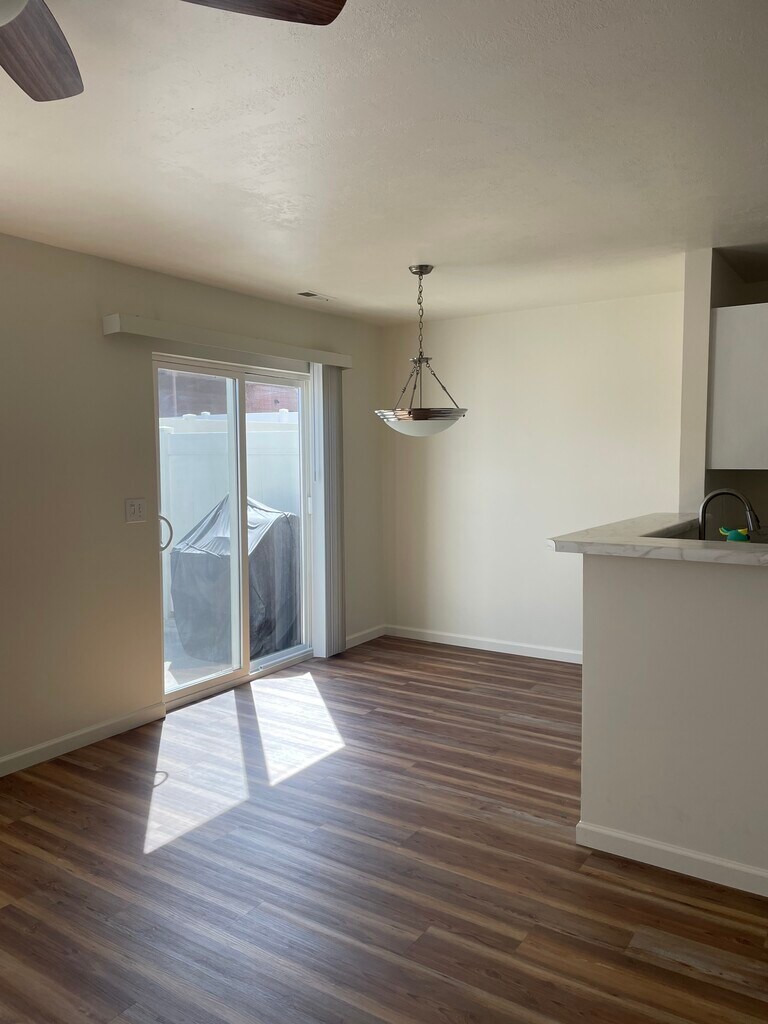 This Millcreek Townhome has been thoroughly updated and is move in ready. It has brand new flooring including carpeting, LVP, and tile. Updated lighting and fresh paint throughout. New kitchen countertops, stainless steel appliances, new master bathroom vanity, blinds, and private backyard w LED patio umbrella, and smoker grill. One car attached garage. Washer and dryer in unit. A/C installed 3 yrs ago with new furnace. Its central Eastside location is very close to Costco, Smith's, Walmart, 2 hospitals, and freeway access. Flexible with either a 6 mo or year lease. No smoking permitted.