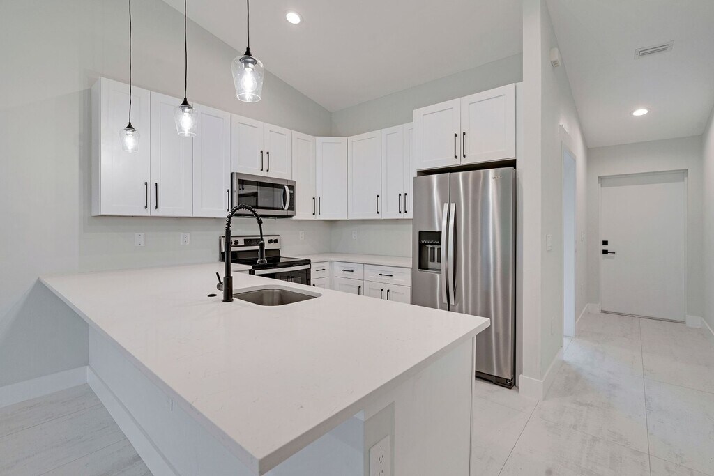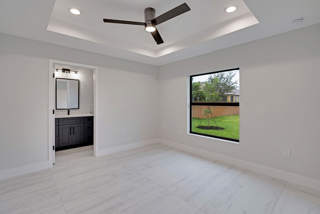 Welcome to our brand new construction Duplex in Cape Coral, FL! This spacious 3-bedroom plus den/2-bathroom duplex is perfect for those seeking a modern and comfortable living space. As you step inside, you'll be greeted by vaulted ceilings that create an open and airy atmosphere. The entire unit is beautifully tiled, adding a touch of elegance to every room. The kitchen features stunning granite countertops and stainless steel appliances, making meal preparation a breeze. With a convenient breakfast bar, you can enjoy quick bites or entertain guests while cooking. The unit also boasts a walk-in closet, providing ample storage space for all your belongings. The master bathroom offers a luxurious walk-in shower, perfect for unwinding after a long day. You'll also find a lanai, where you can relax and enjoy the Florida sunshine. Ceiling fans are installed throughout the property, ensuring a comfortable temperature year-round. With a 2-car garage, you'll have plenty of space for parking and additional storage. Washer and dryer hookups are available, making laundry day a breeze. This duplex is perfect for those looking for a modern and stylish unit in a desirable location. Don't miss out on the opportunity to make this beautiful duplex your new home! Property Manager - Yami Martinez - No pets No HOA No pool