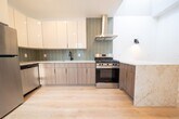 Fully renovated 2-bedroom, 1-bath unit offering modern design and high-end finishes. This bright and stylish home features hardwood floors and central ac throughout. The contemporary kitchen is flooded with natural light from a skylight and showcases granite countertops, a striking waterfall island, stainless steel appliances, and a sleek modern hood. Additional highlights include an in-unit LG washer and dryer and a spa-inspired bathroom complete with a rainfall shower. A thoughtfully designed home that blends comfort, functionality, and modern elegance.